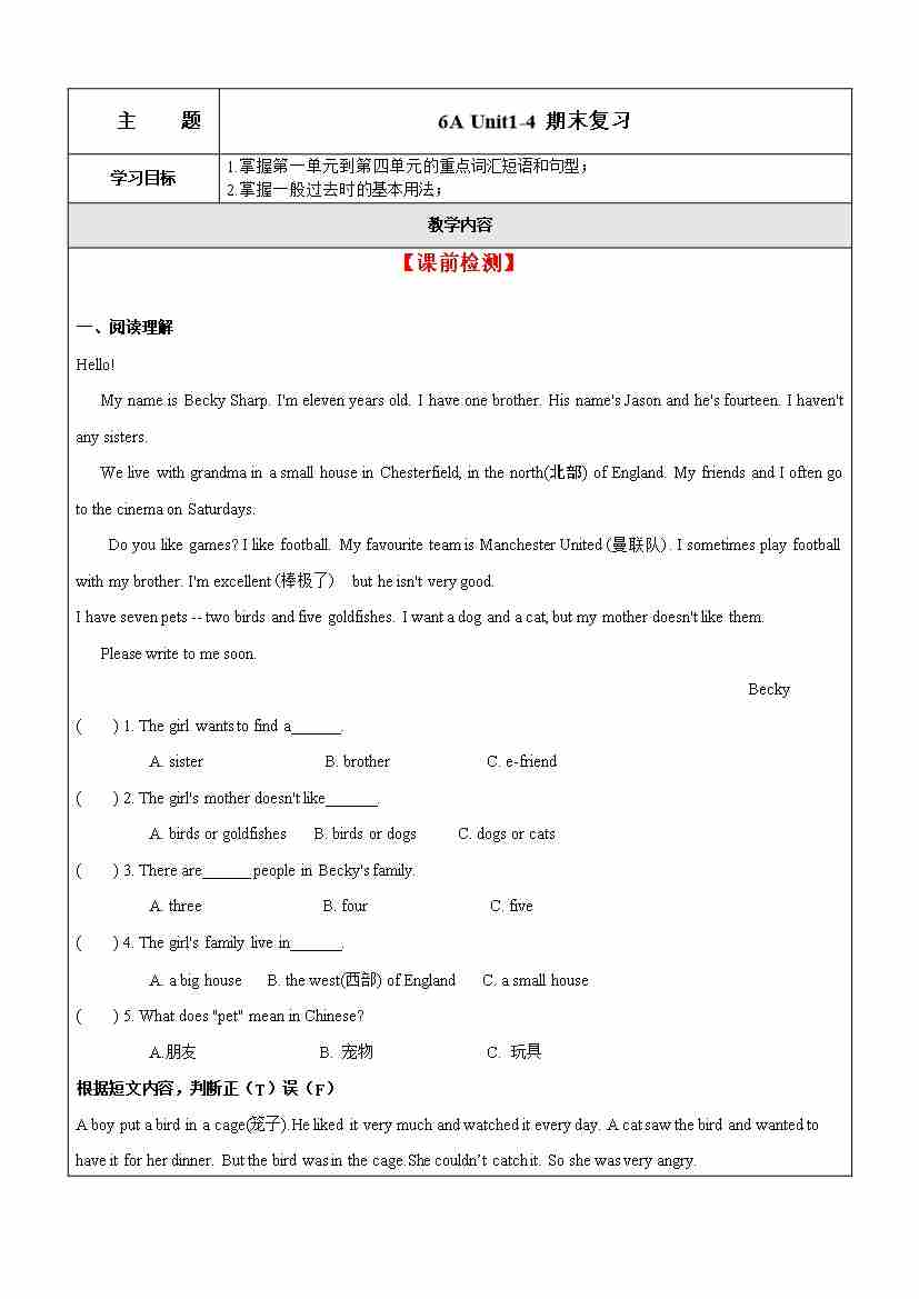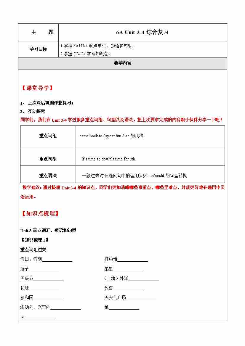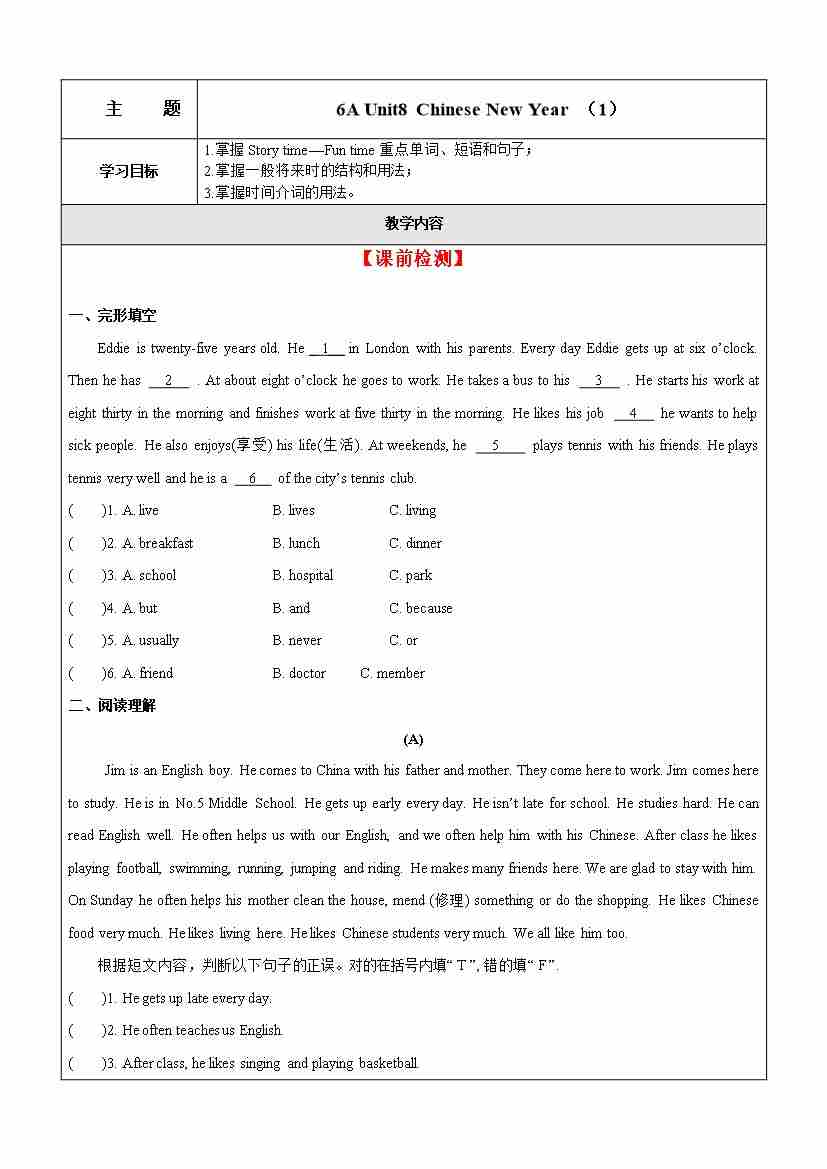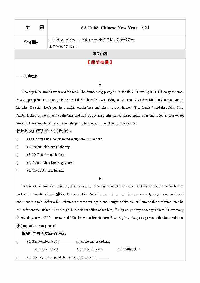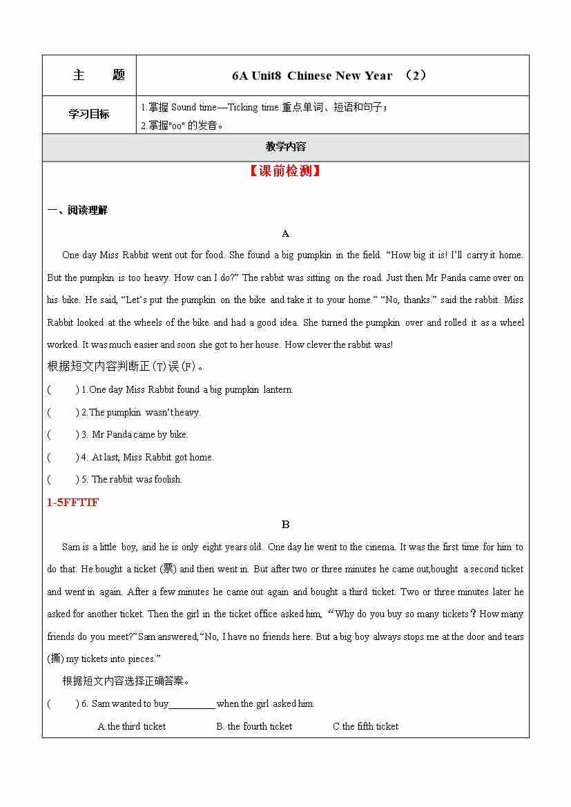 Unit 8 Chinese New Year 单元提优 六上英语-译林三起(含答案)