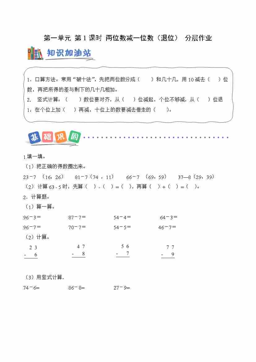 第一单元 第1课时 两位数减一位数(退位)(分层作业)
