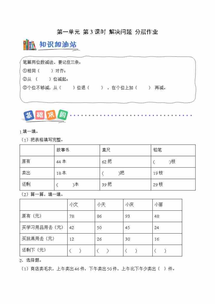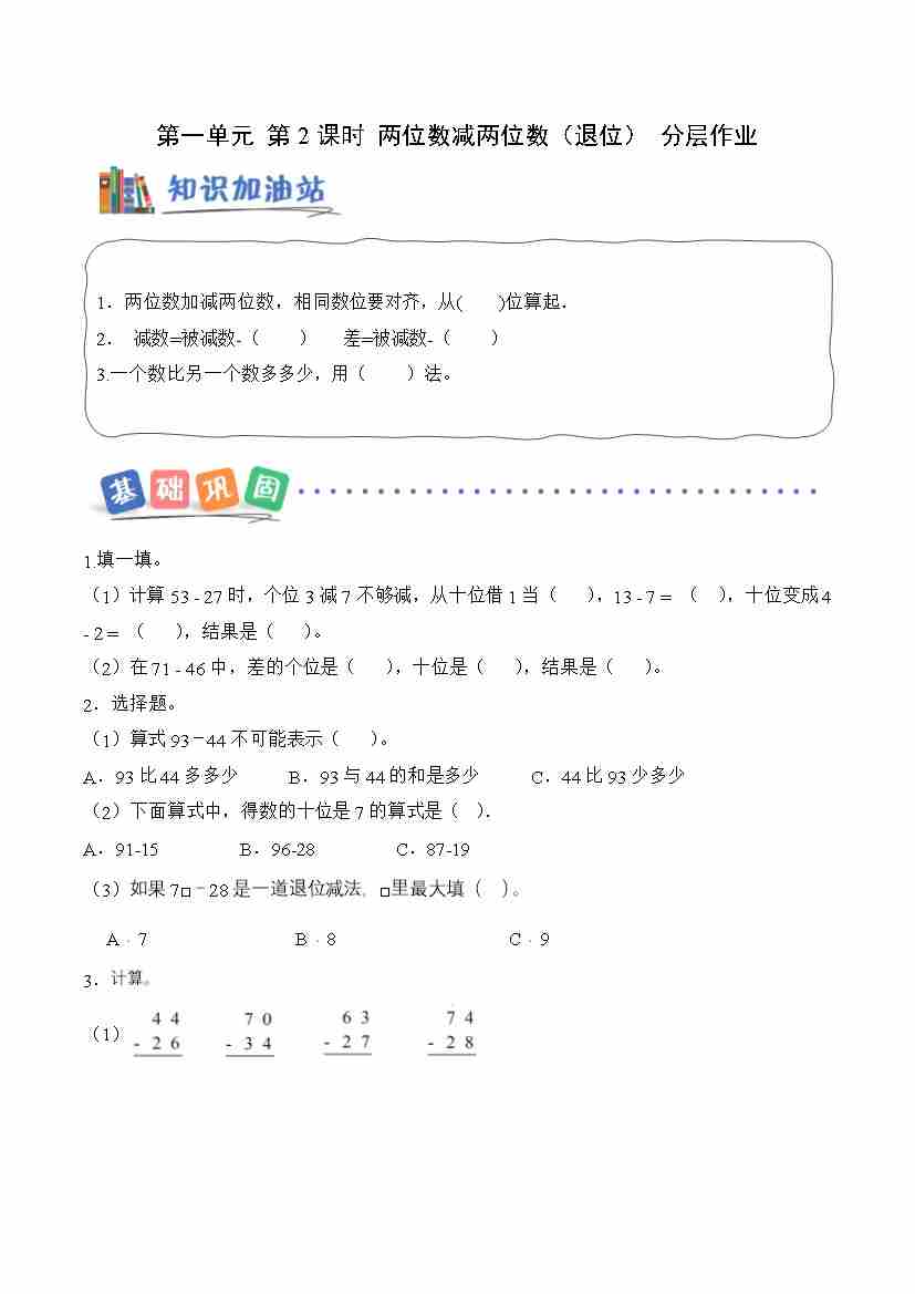 第一单元 第2课时 两位数减两位数(退位)(分层作业)