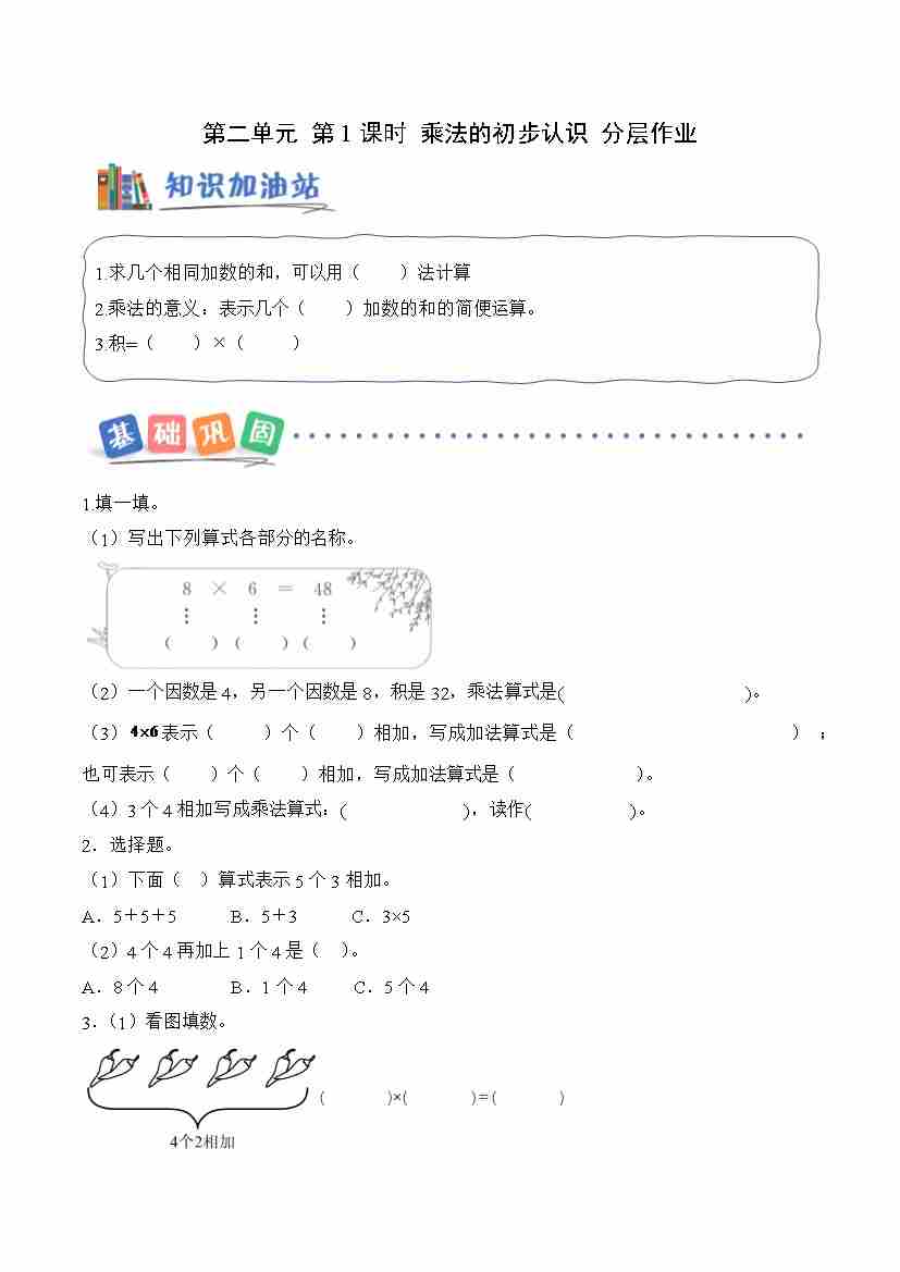 第二单元 第1课时 乘法的初步认识(分层作业)