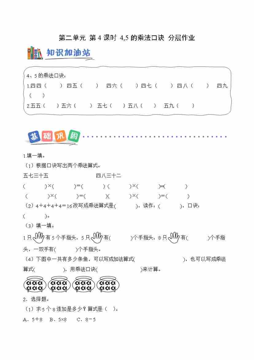 第二单元 第4课时 4,5的乘法口诀(分层作业)