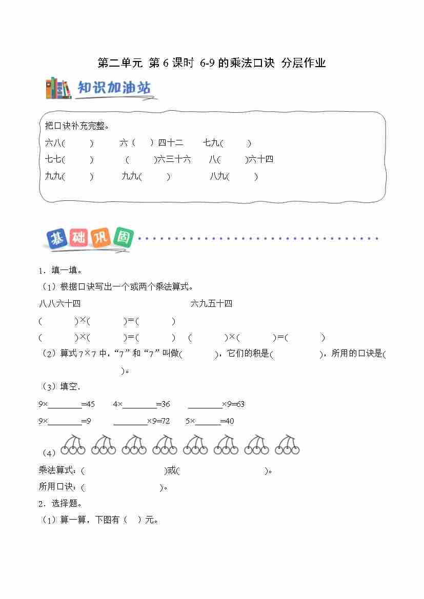第二单元 第6课时 6-9的乘法口诀(分层作业)