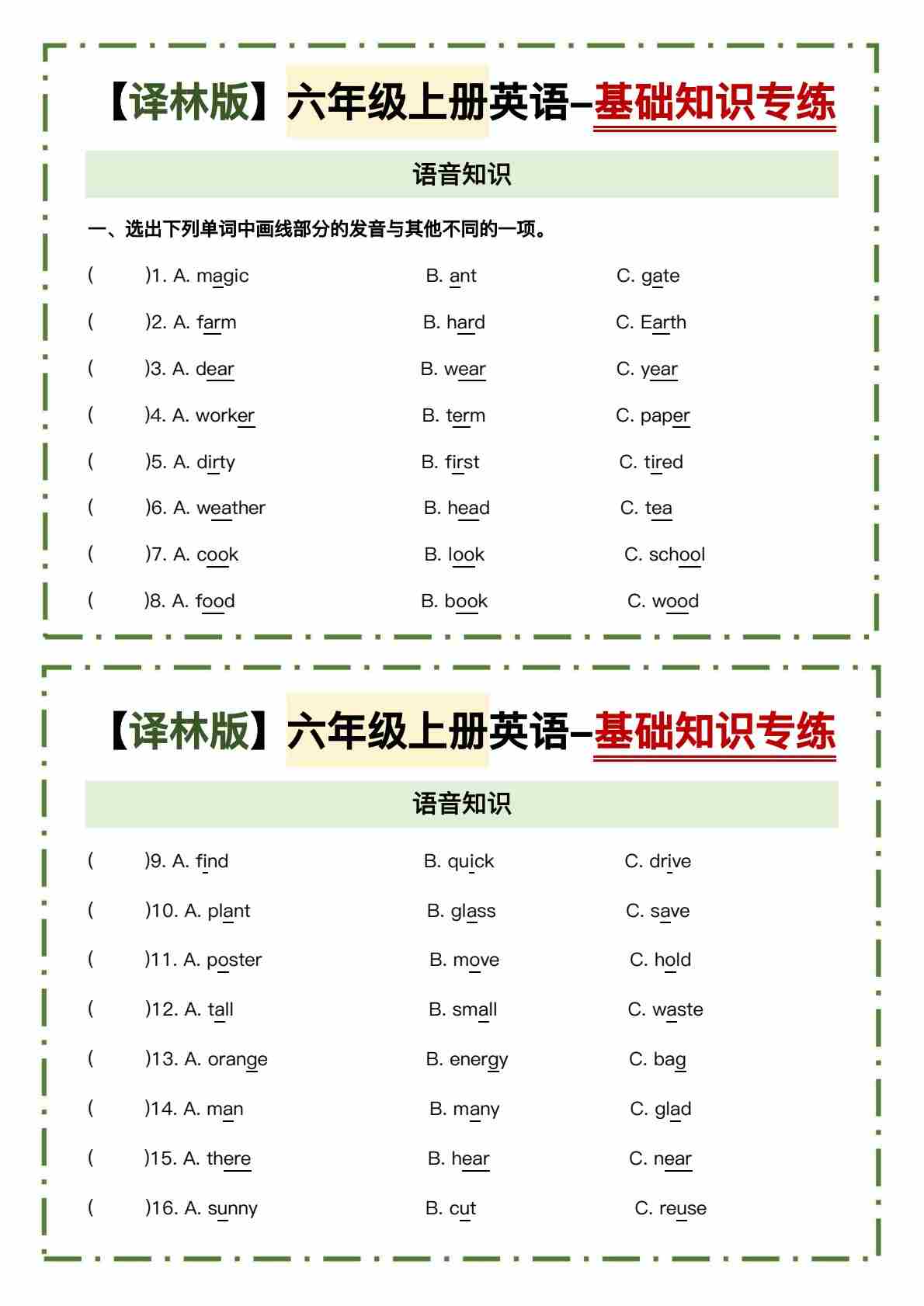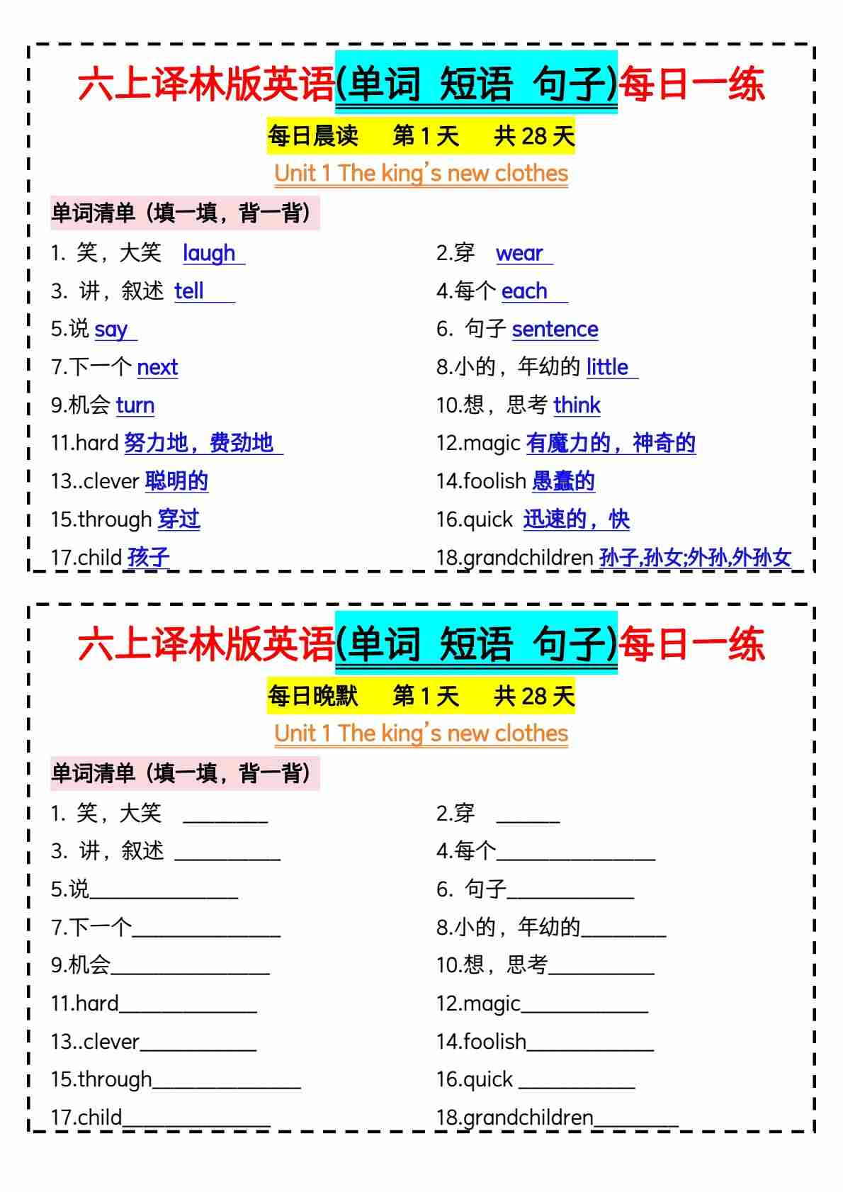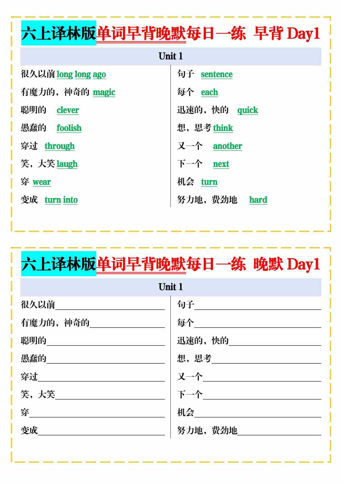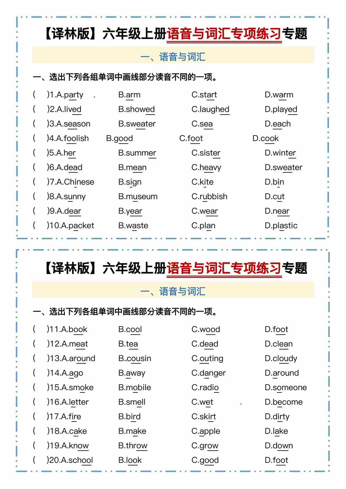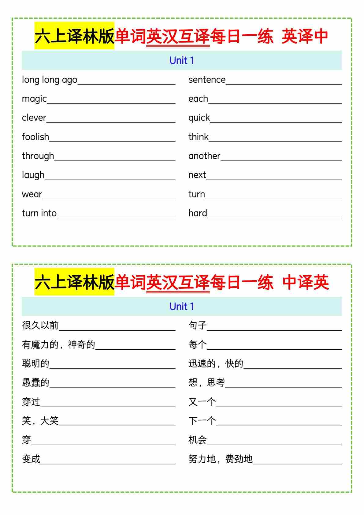 【译林版】六年级上册英语-常考易错题专练小纸条