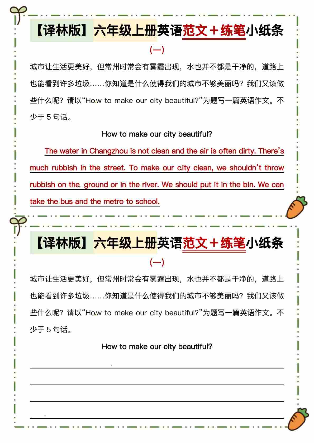 《 Unit 1 单元话题写作》(含范文)--译林版英语六年级上册