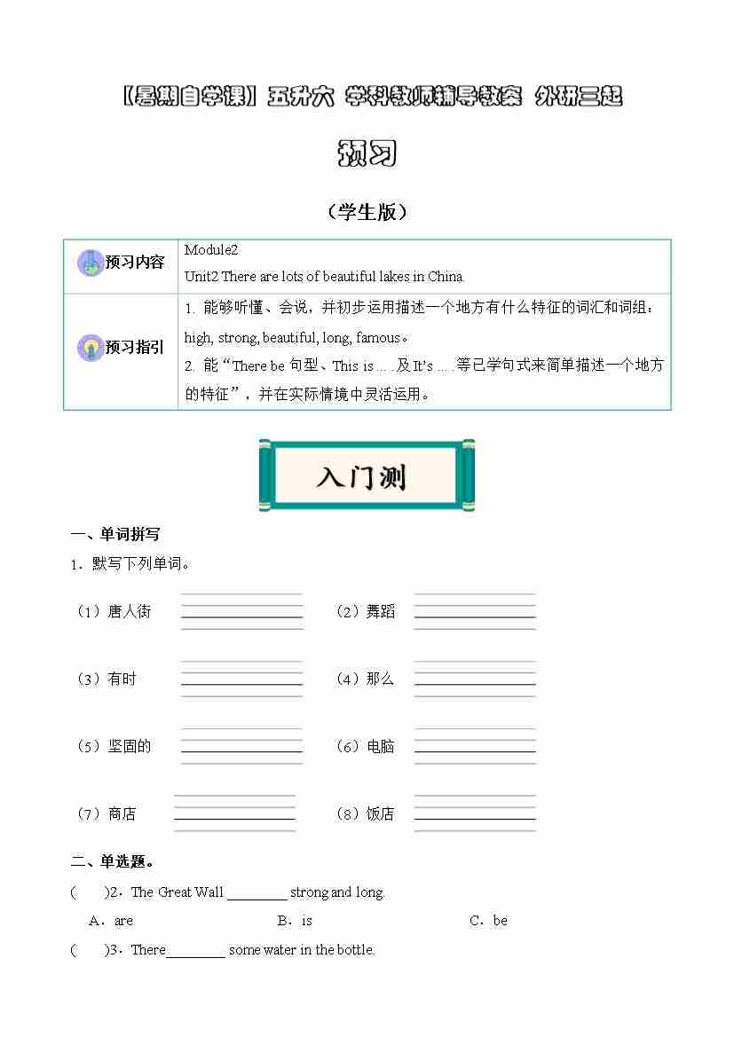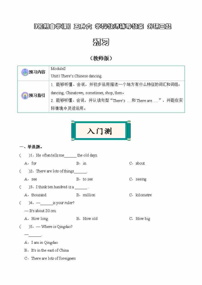 【暑假讲义】五升六课本预习 第12讲:Module2U2预习(外研版三起)(教师版)