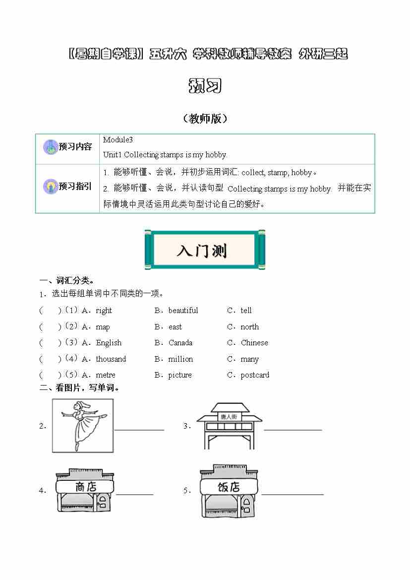 【暑假讲义】五升六课本预习 第13讲:Module3U1预习(外研版三起)(教师版)
