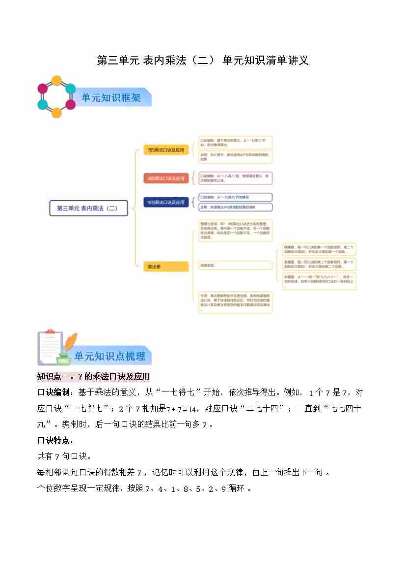 第三单元 表内乘法(二)(原卷版)