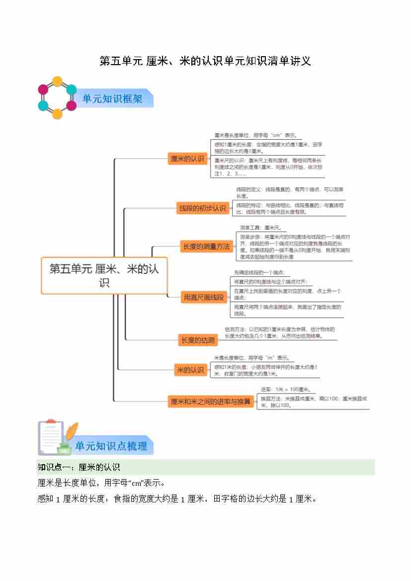 第五单元 厘米、米的认识(原卷版)