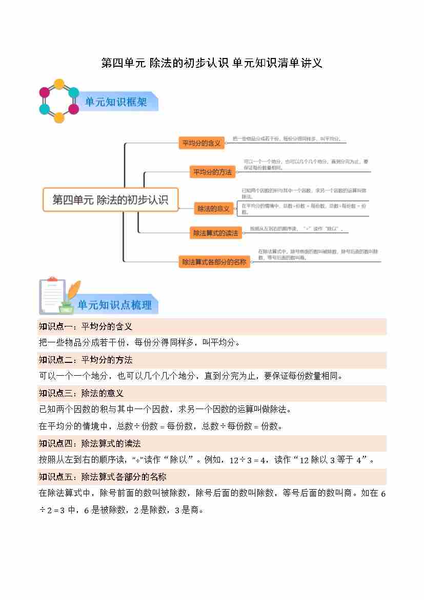 第四单元 除法的初步认识(原卷版)
