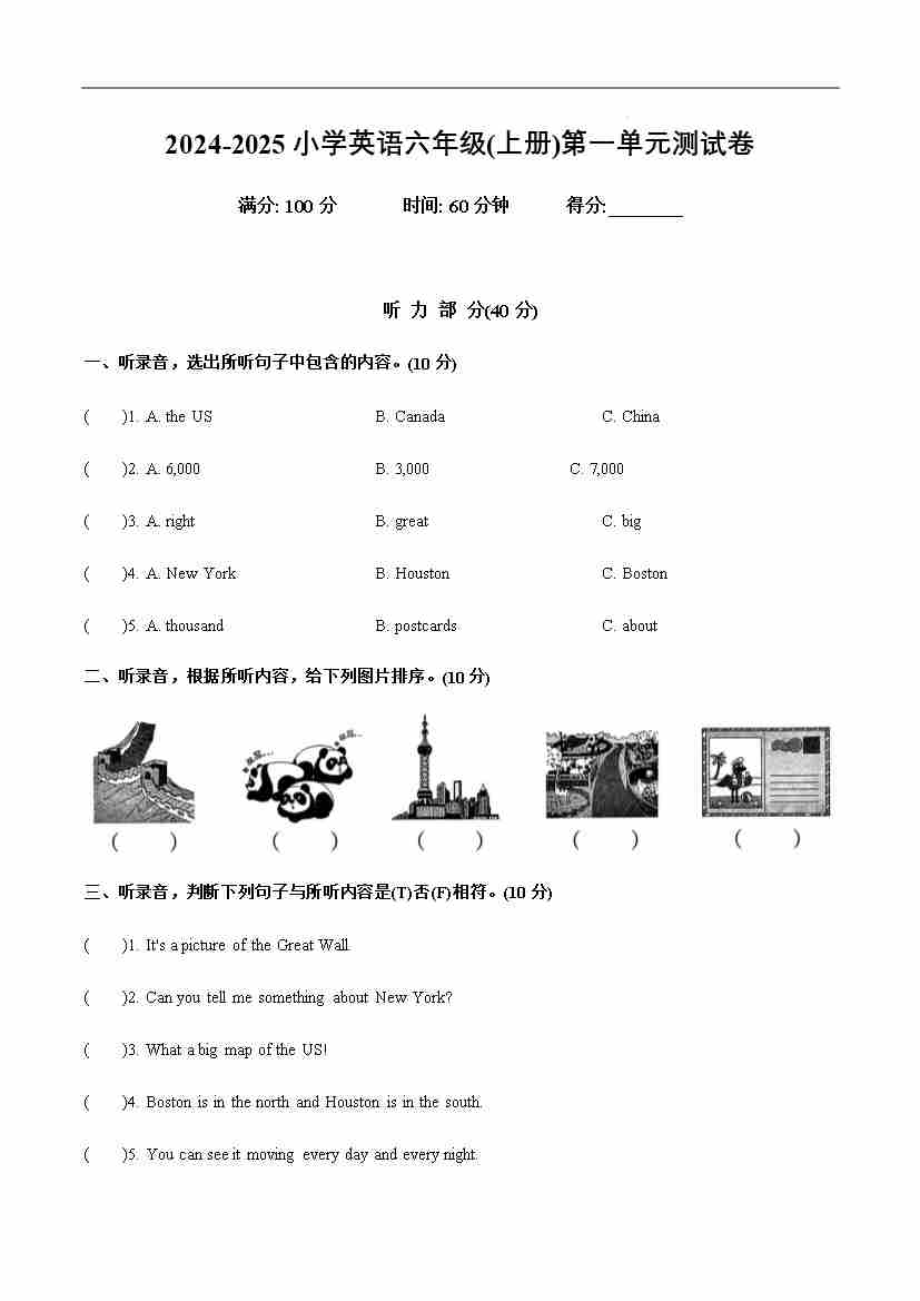 Module 1(单元测试) -2024-2025学年英语六年级上册(外研版三起)