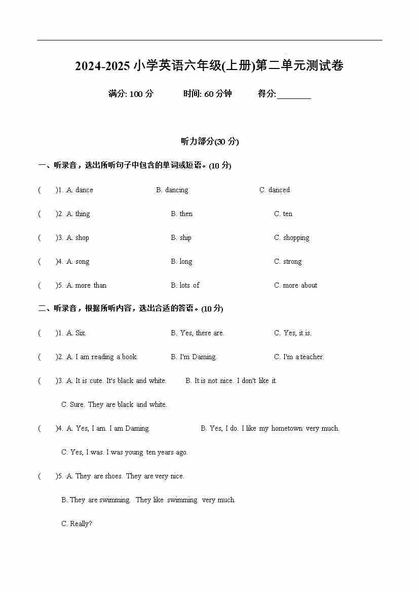 Module 2(单元测试) -2024-2025学年英语六年级上册(外研版三起)