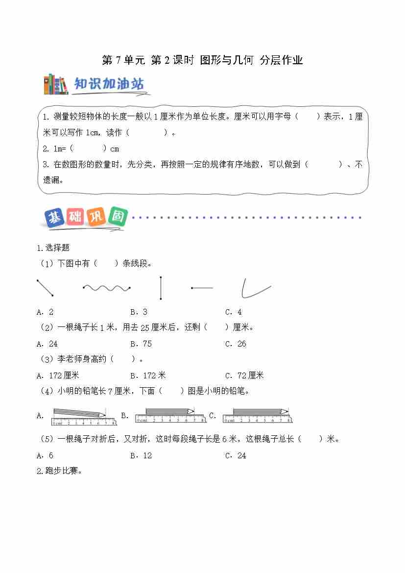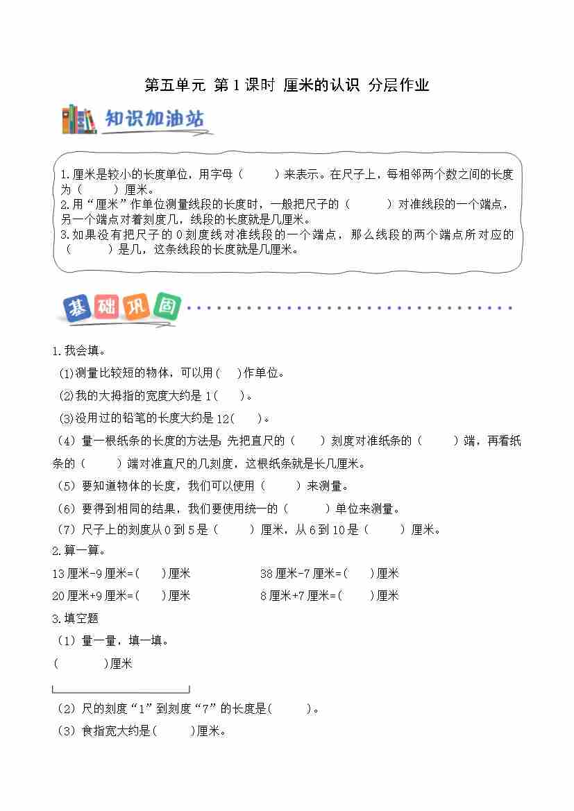 第五单元第1课时 厘米的认识(分层作业)数学青岛版二年级上册(新教材)