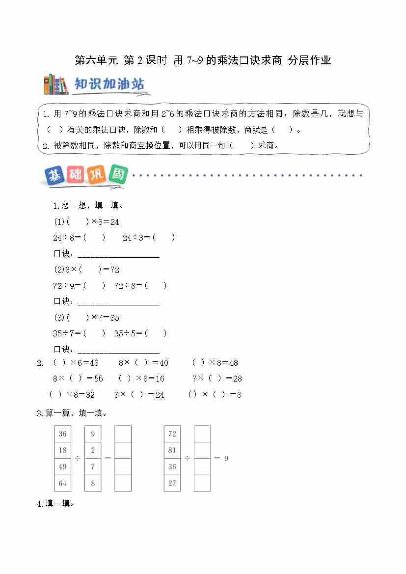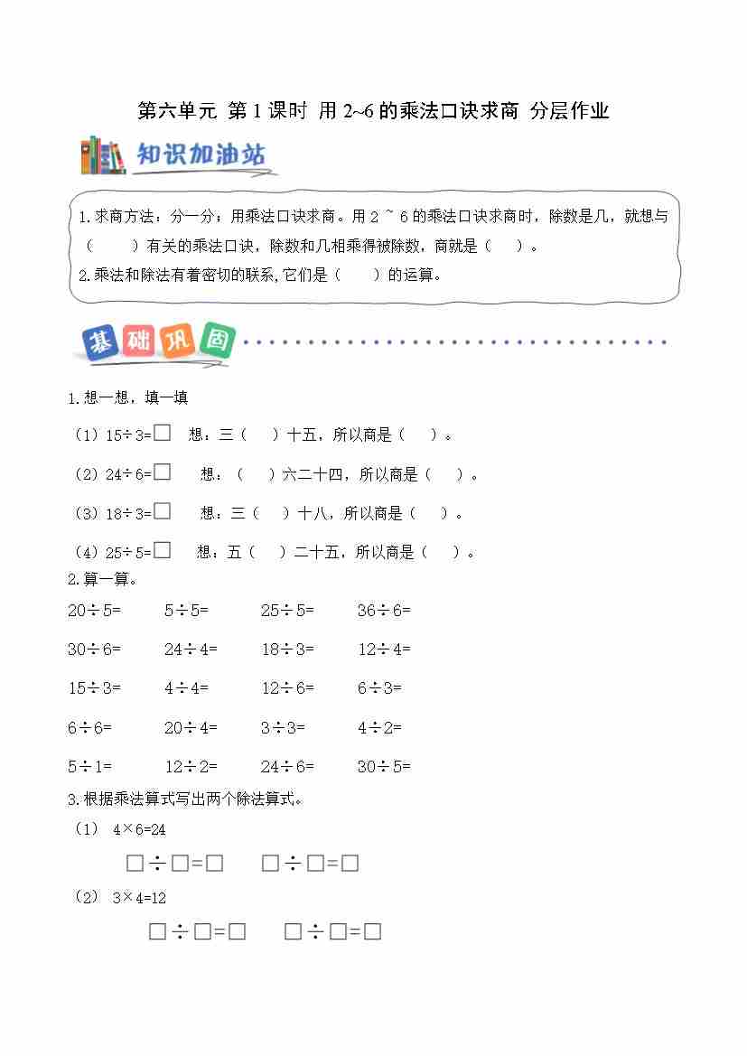 第六单元第1课时 用2~6的乘法口诀求商(分层作业)数学青岛版二年级上册(新教材)