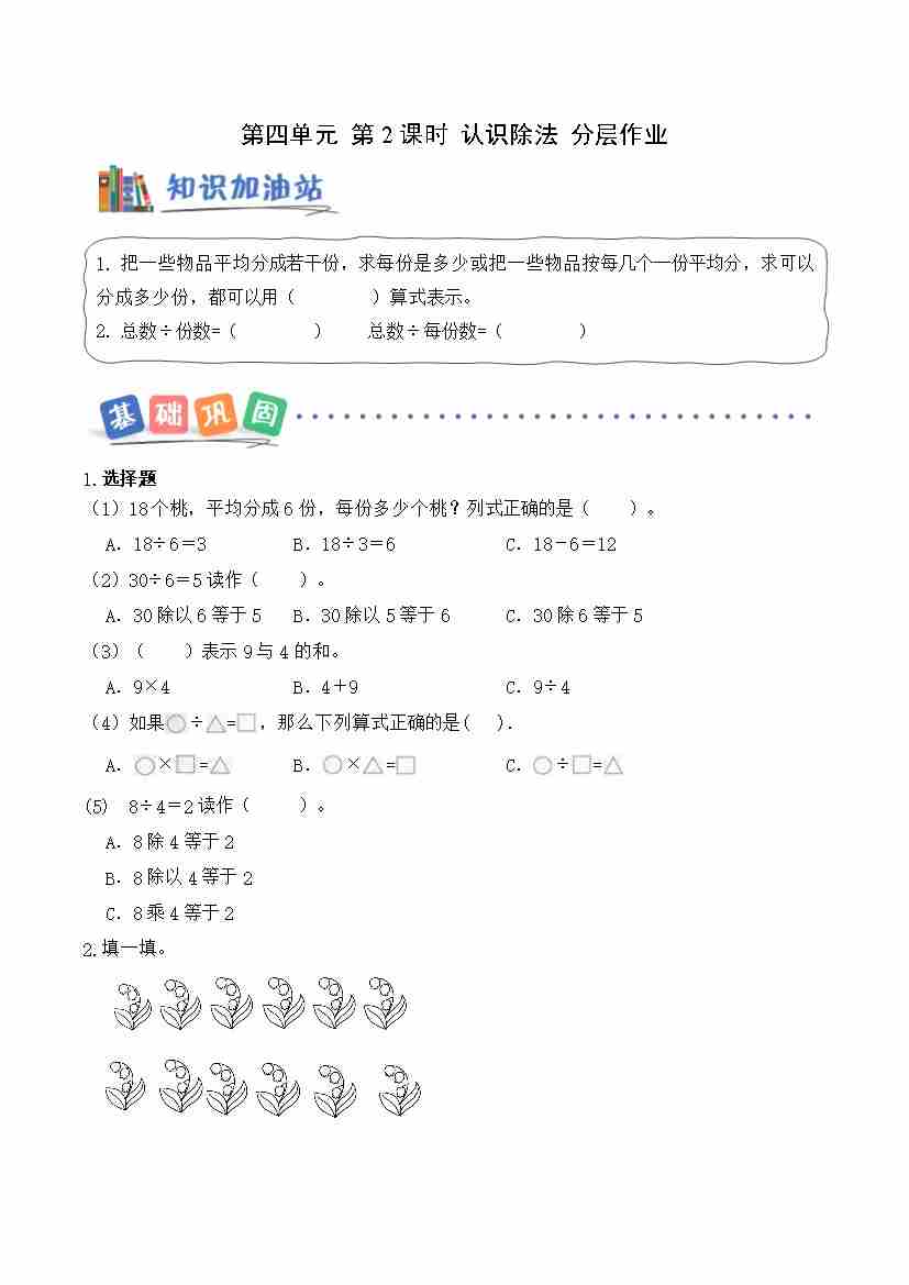 第四单元第2课时 认识除法(分层作业)数学青岛版二年级上册(新教材)