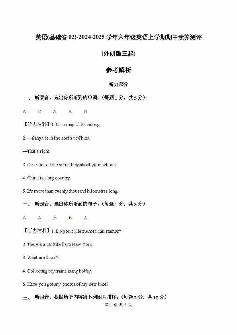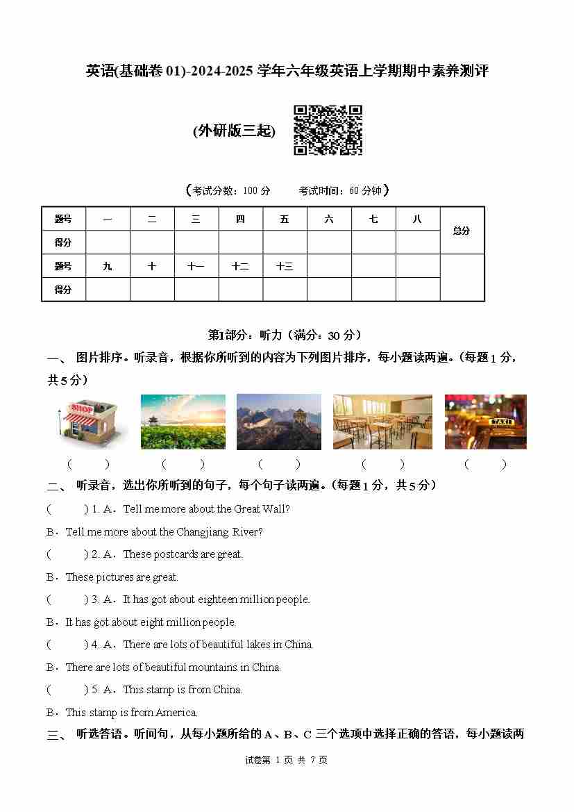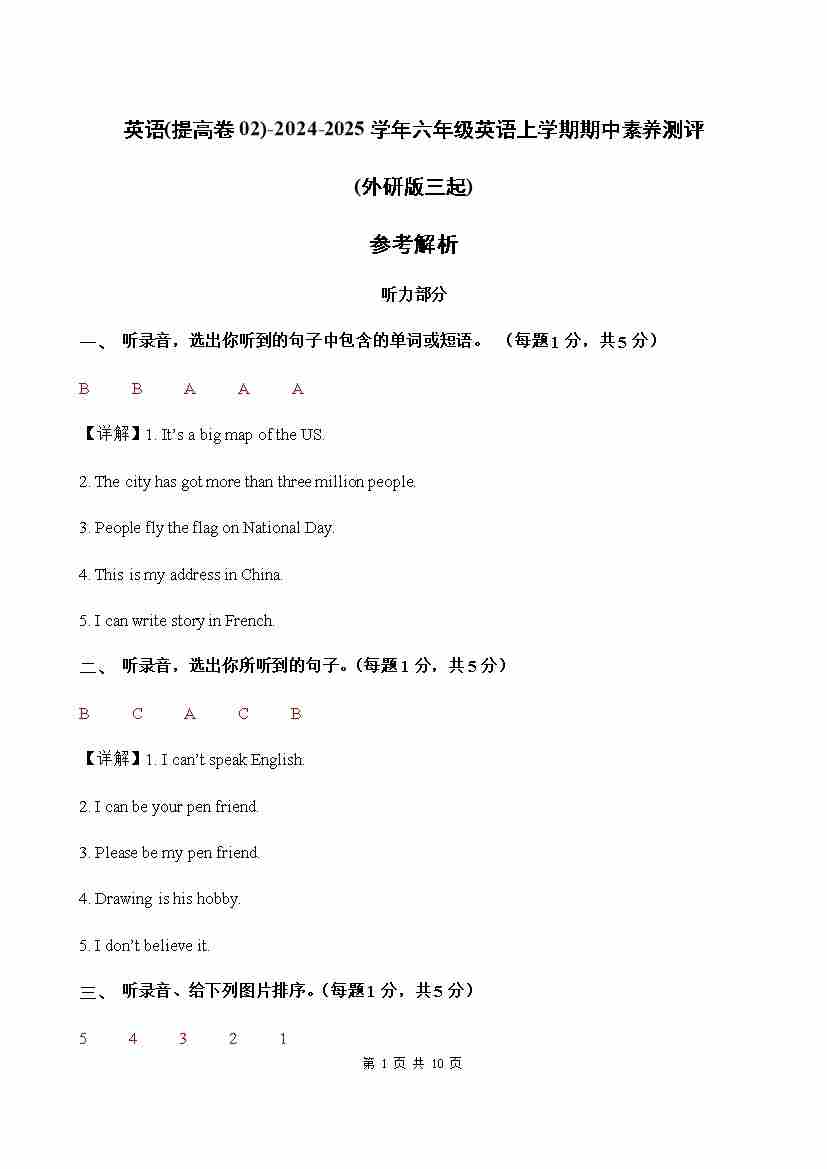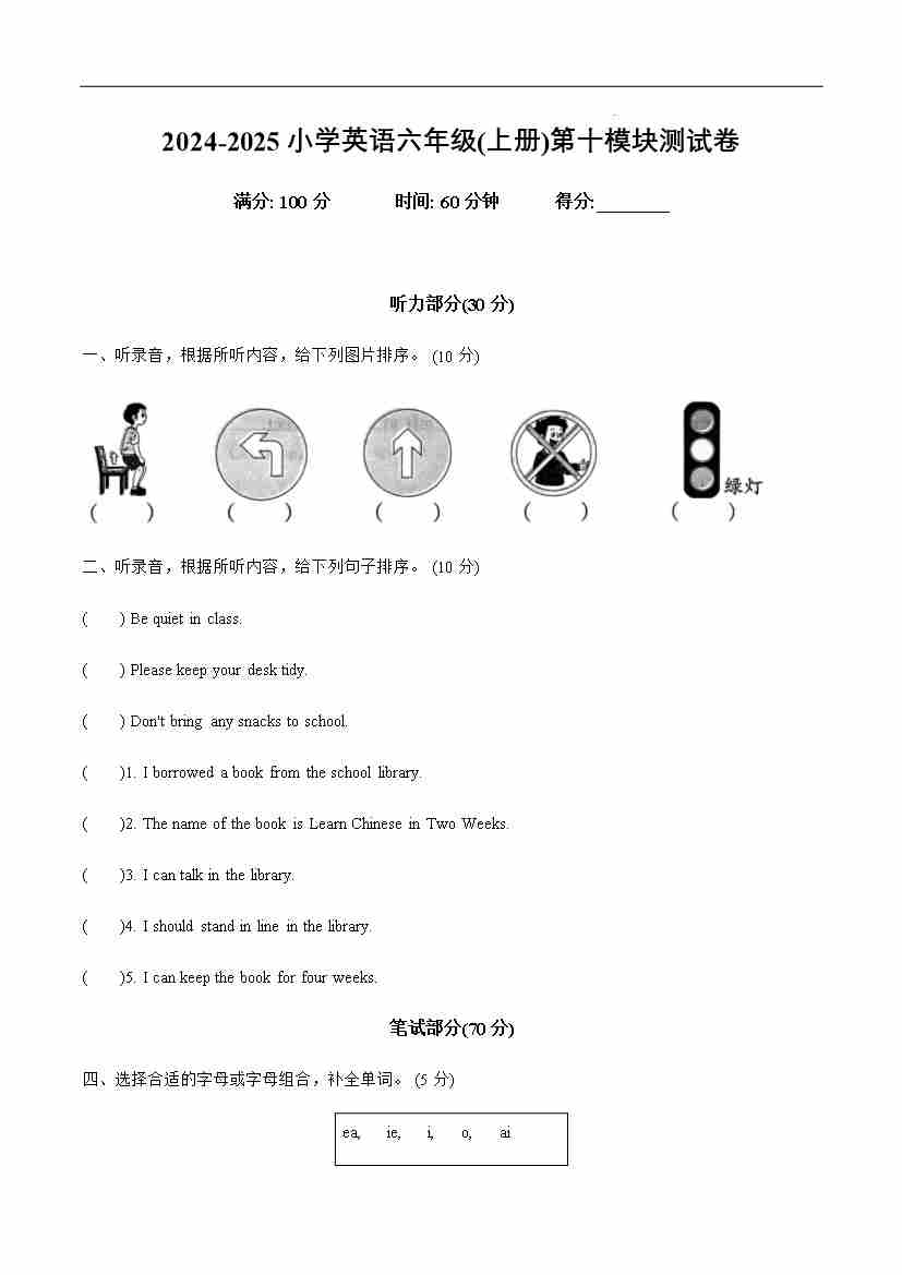Module 10(单元测试) -2024-2025学年英语六年级上册(外研版三起)