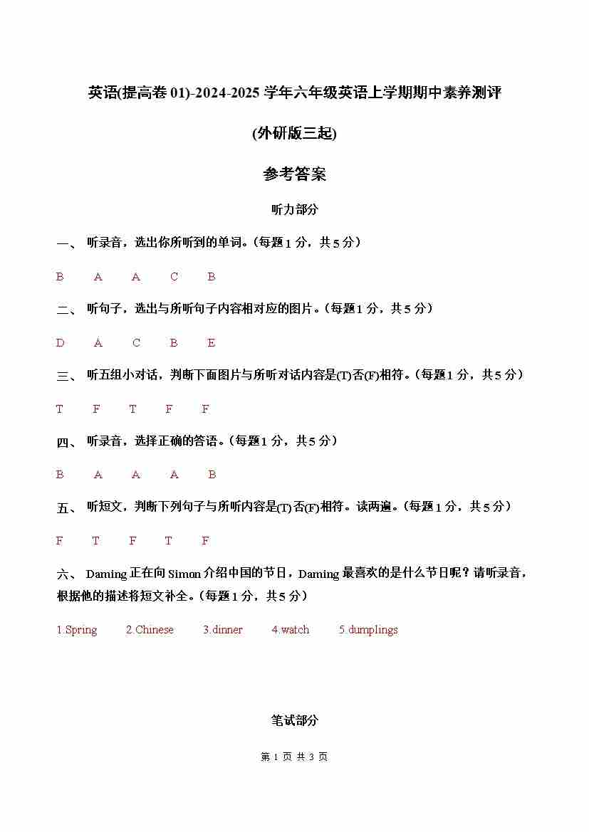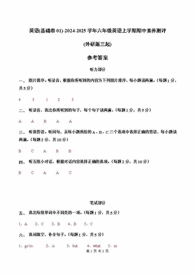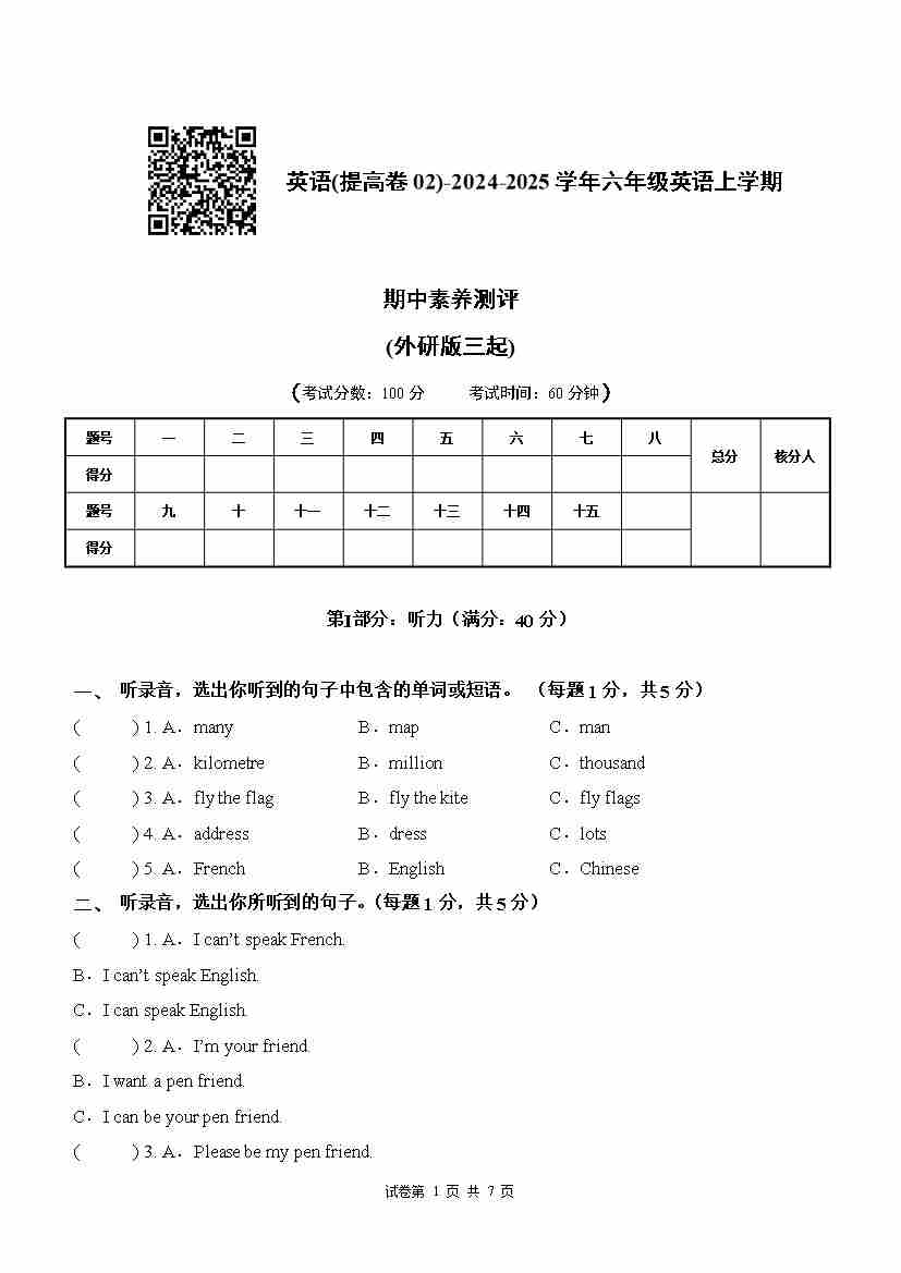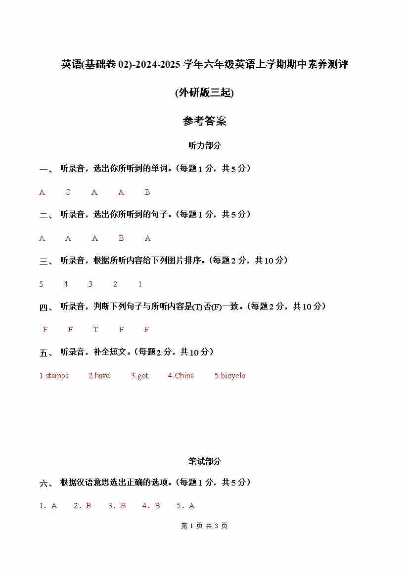 Module 10(单元测试) -2024-2025学年英语六年级上册(外研版三起)