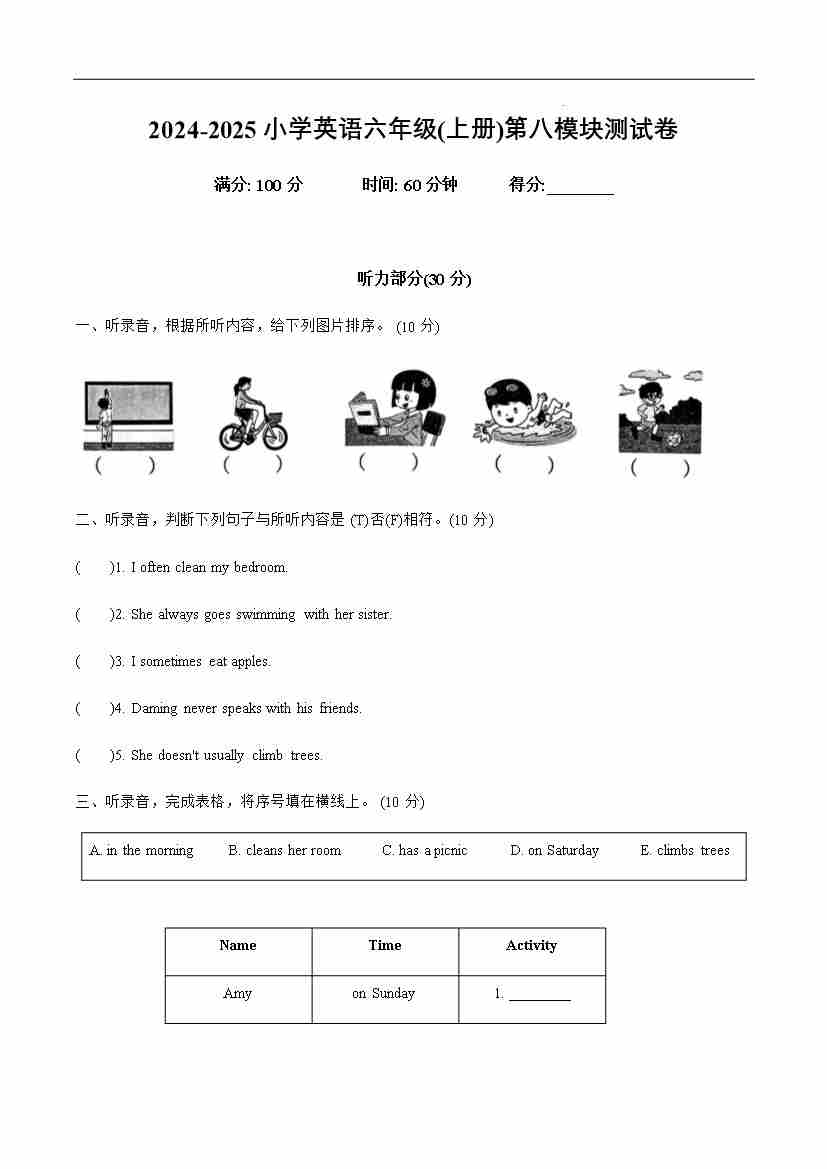 Module 8(单元测试) -2024-2025学年英语六年级上册(外研版三起)
