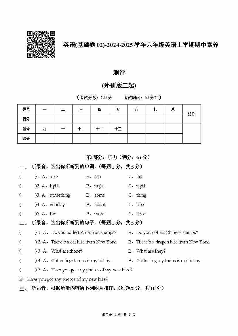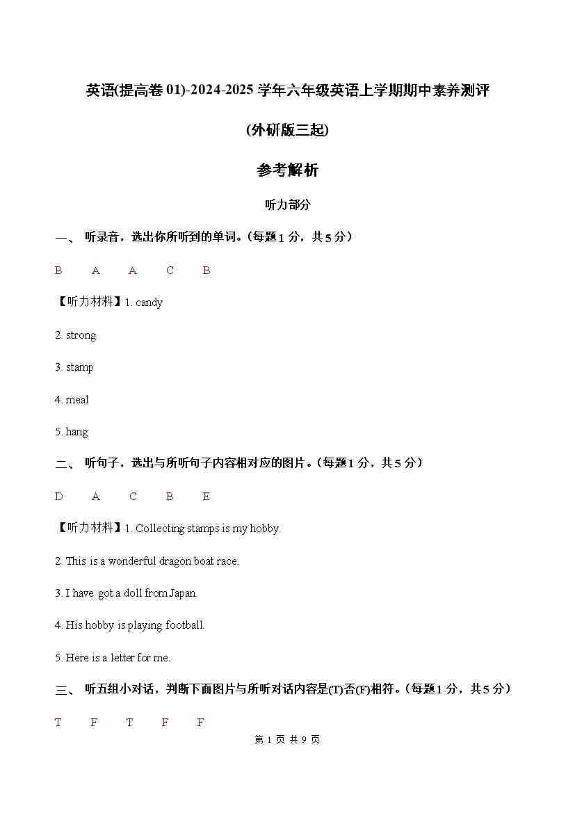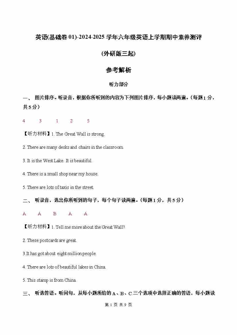 Module 9(单元测试) -2024-2025学年英语六年级上册(外研版三起)
