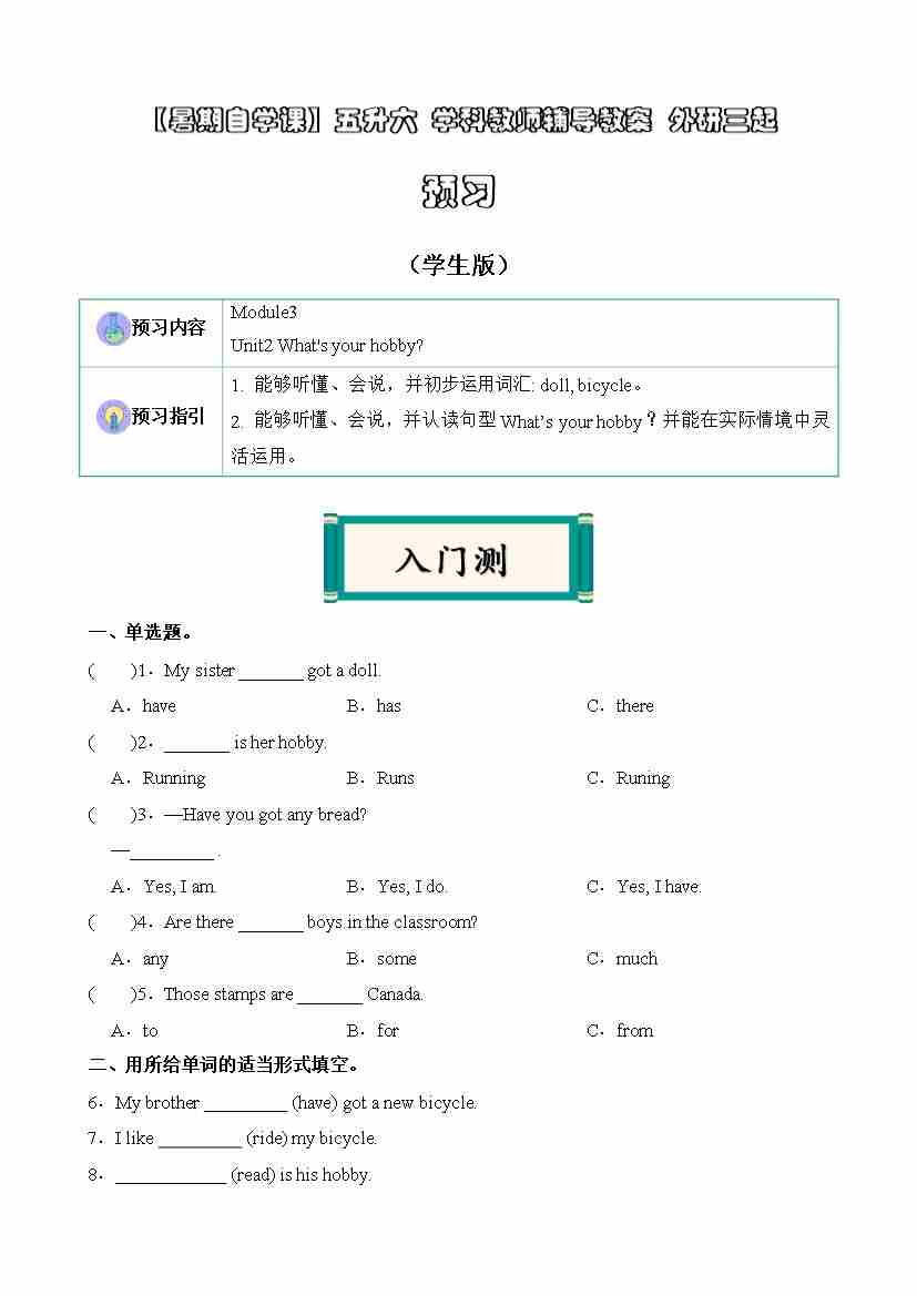 【暑假讲义】五升六课本预习 第18讲:Module5U2预习(外研版三起)(教师版)