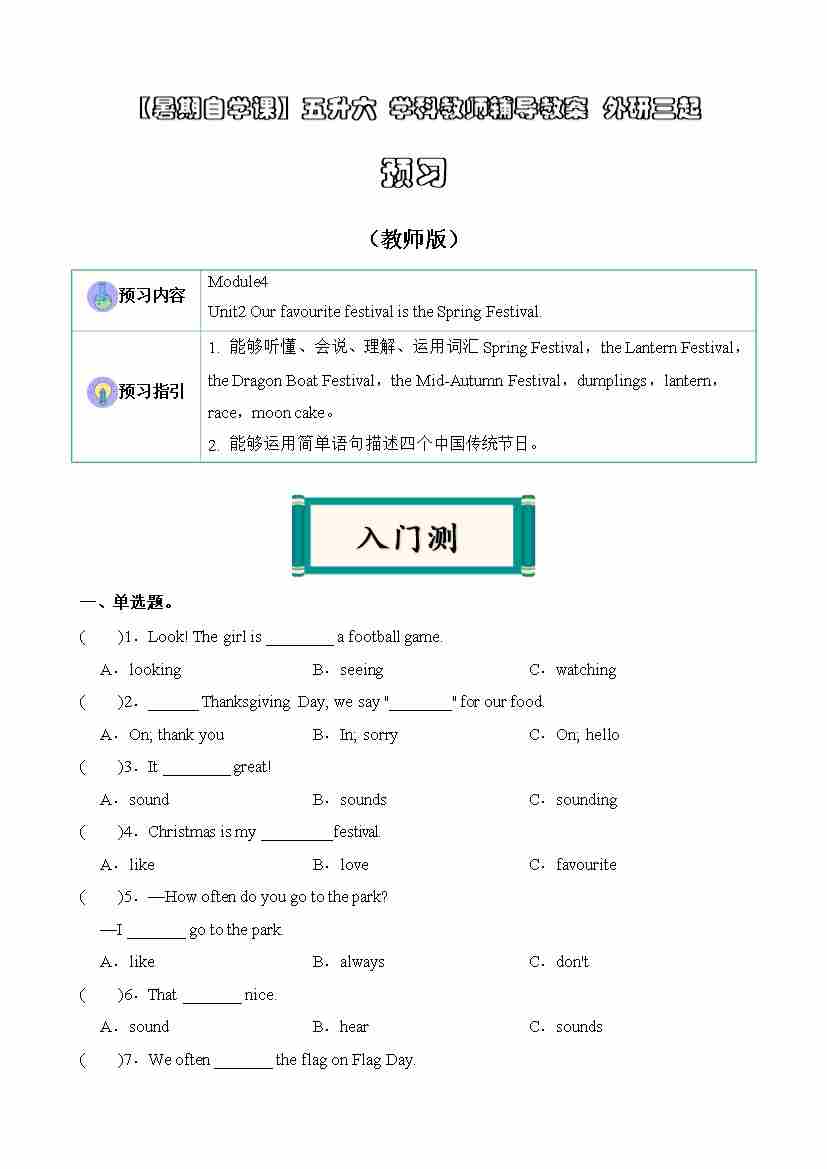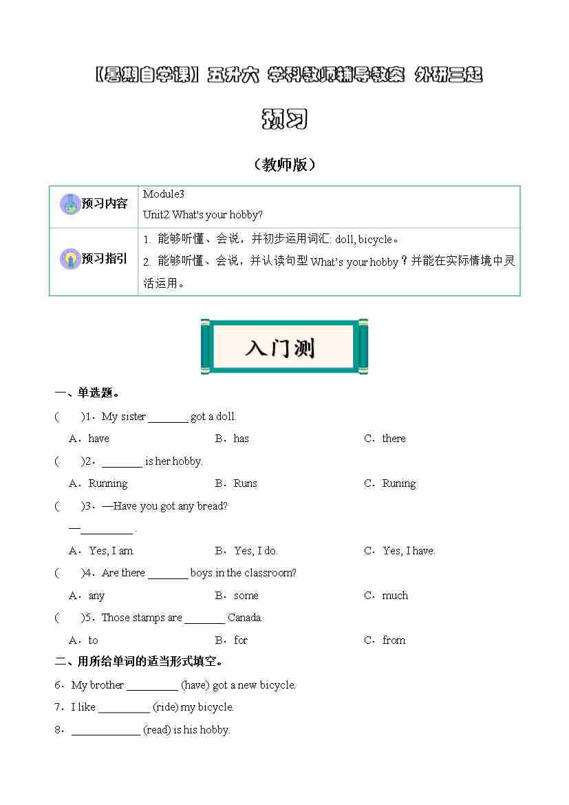 【暑假讲义】五升六课本预习 第14讲:Module3U2预习(外研版三起)(教师版)