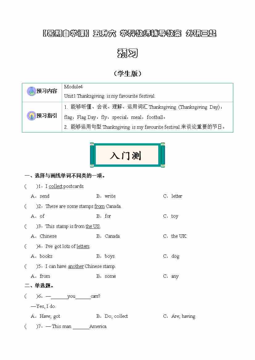 【暑假讲义】五升六课本预习 第15讲:Module4U1预习(外研版三起)(教师版)