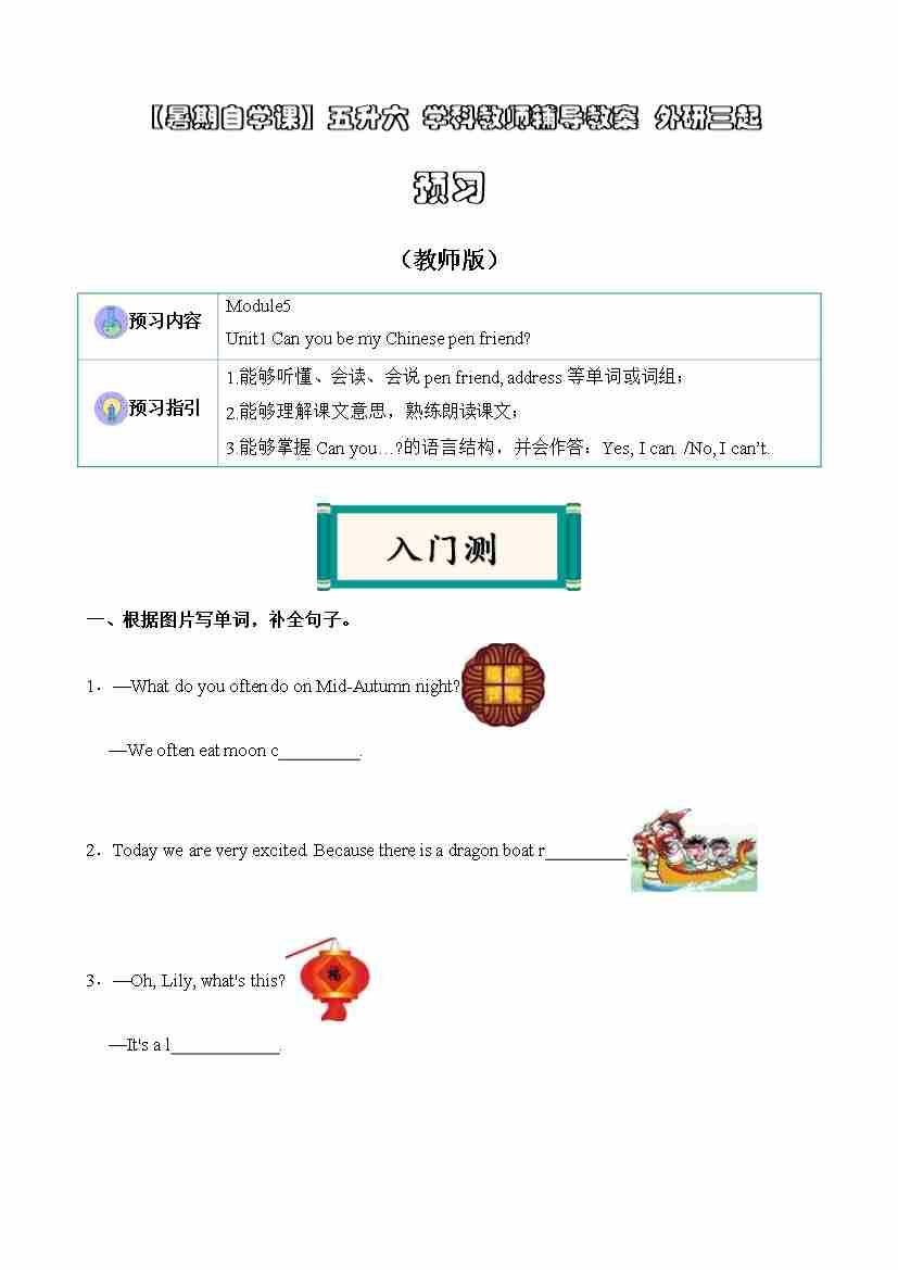 【暑假讲义】五升六课本预习 第17讲:Module5U1预习(外研版三起)(教师版)