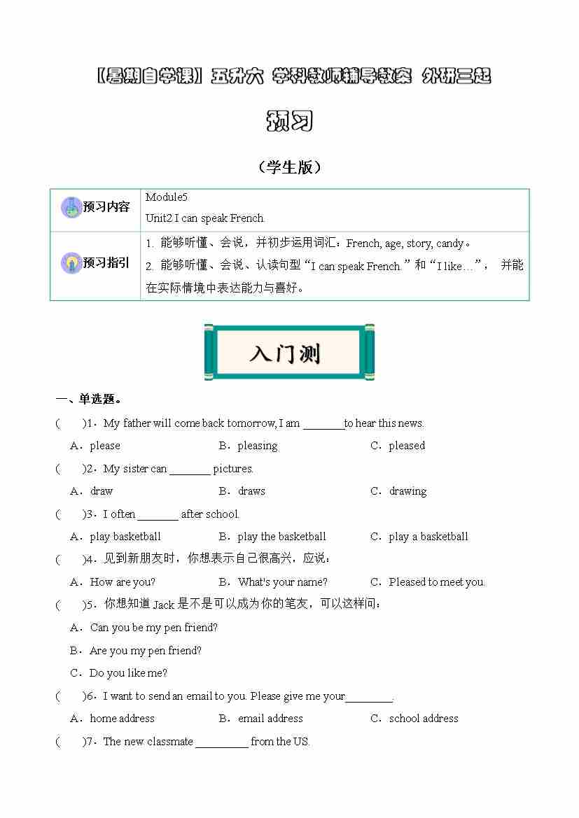 【暑假讲义】五升六课本预习 第18讲:Module5U2预习(外研版三起)(学生版)