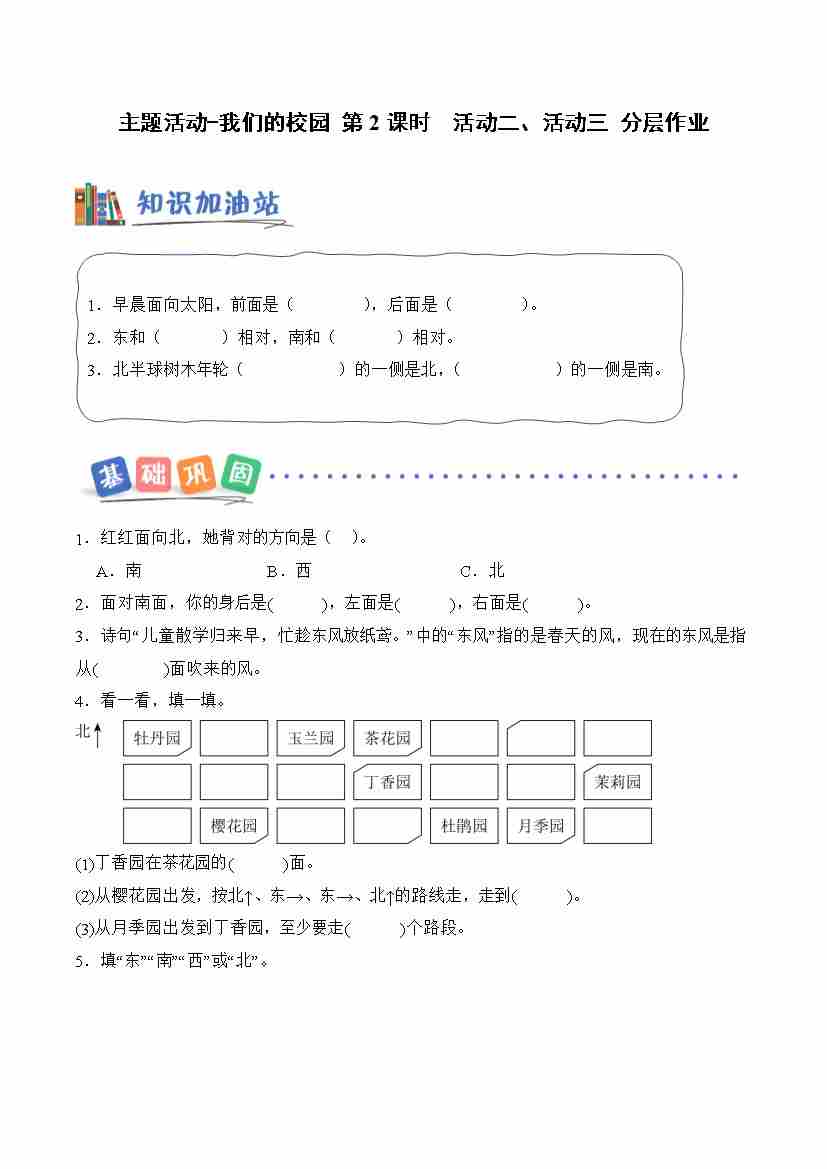 主题活动-我们的校园 第2课时 活动二、活动三(分层作业)数学青岛五四版二年级上册(新教材)