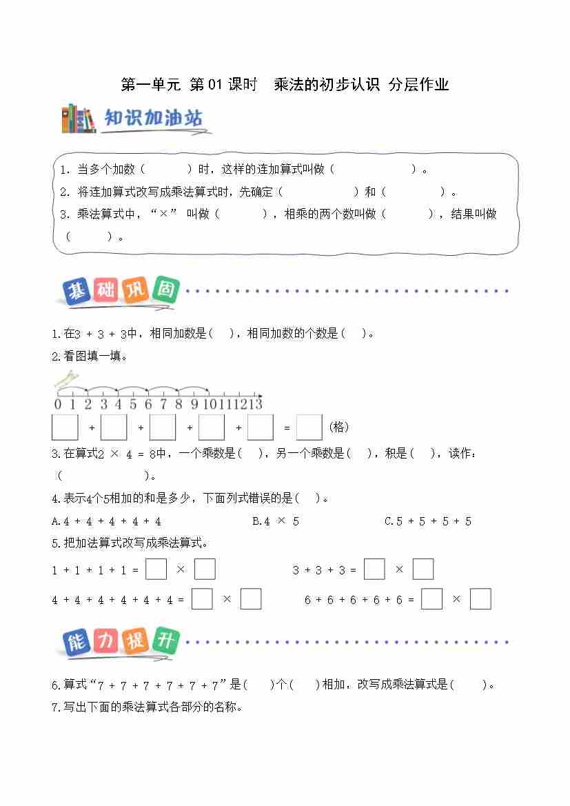 第一单元 第01课时 乘法的初步认识(分层作业)数学青岛五四版二年级上册(新教材)