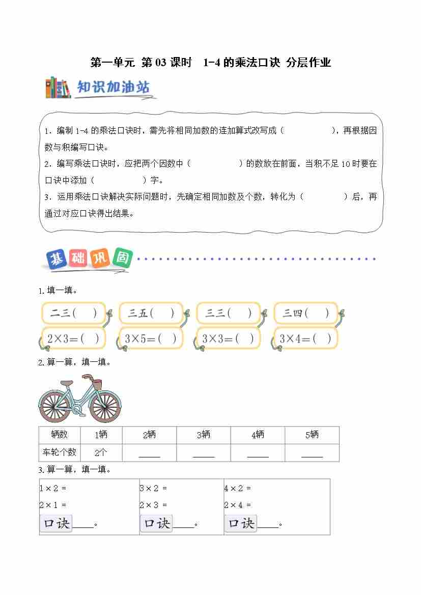 第一单元 第03课时 1-4的乘法口诀(分层作业)数学青岛五四版二年级上册(新教材)
