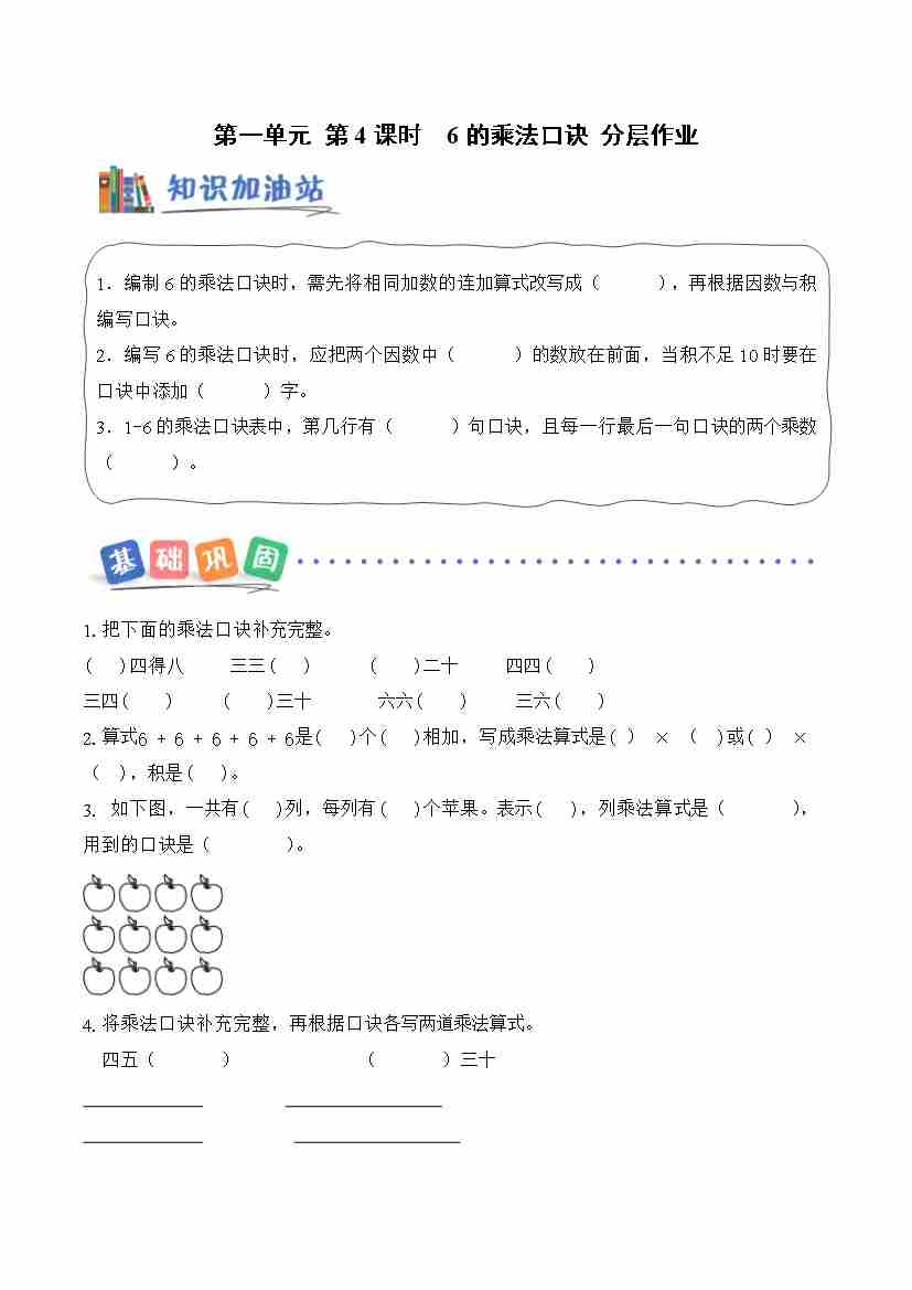 第一单元 第4课时 6的乘法口诀(分层作业)数学青岛五四版二年级上册(新教材)