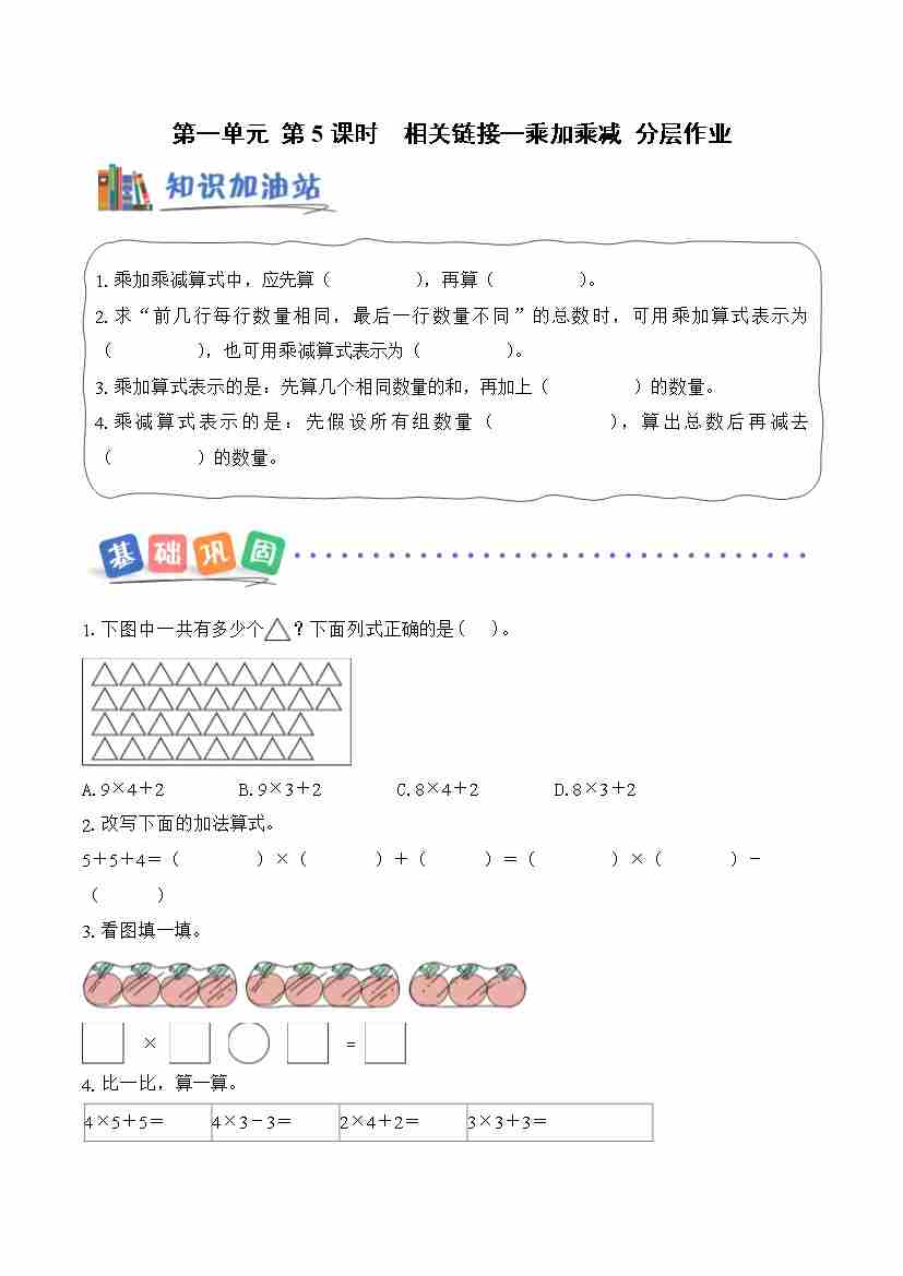 第一单元 第5课时 相关链接--乘加乘减(分层作业)数学青岛五四版二年级上册(新教材)