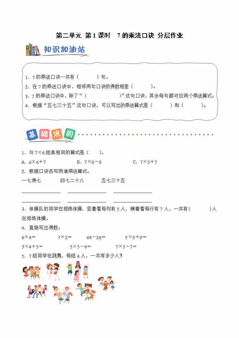 第二单元 第1课时 7的乘法口诀(分层作业)数学青岛五四版二年级上册(新教材)