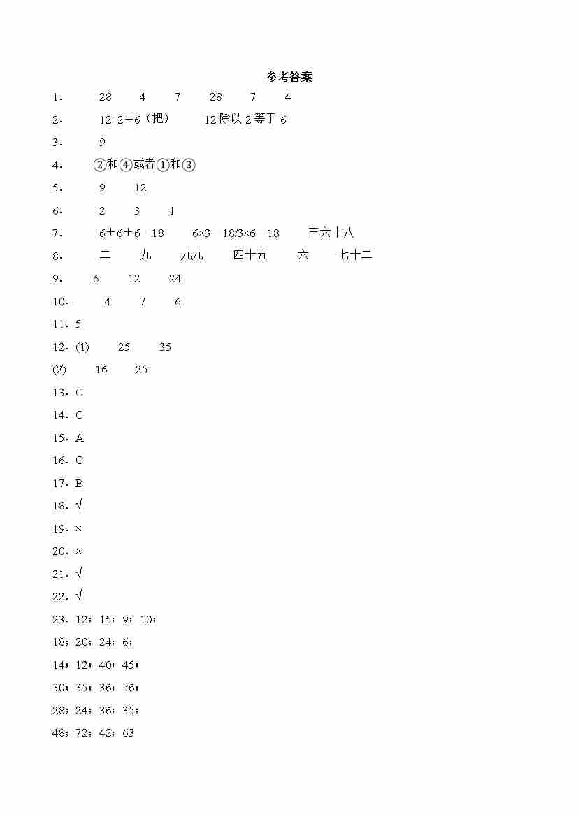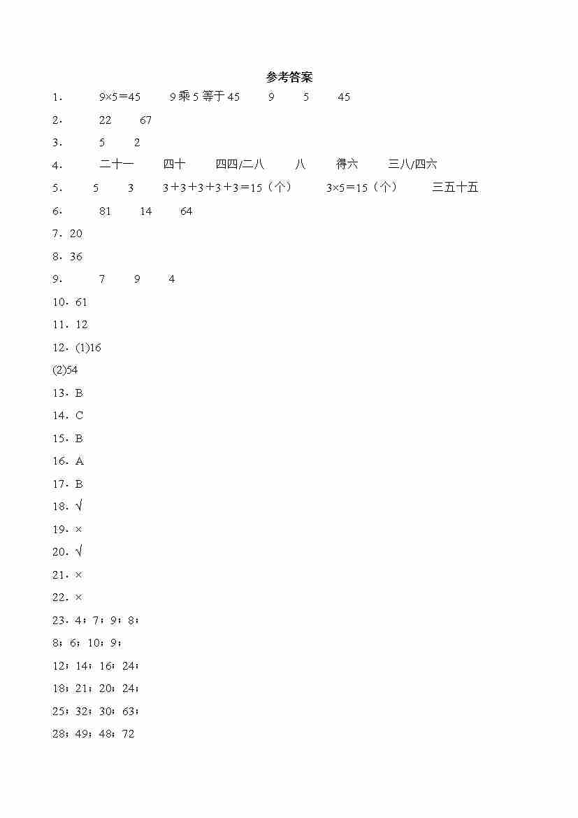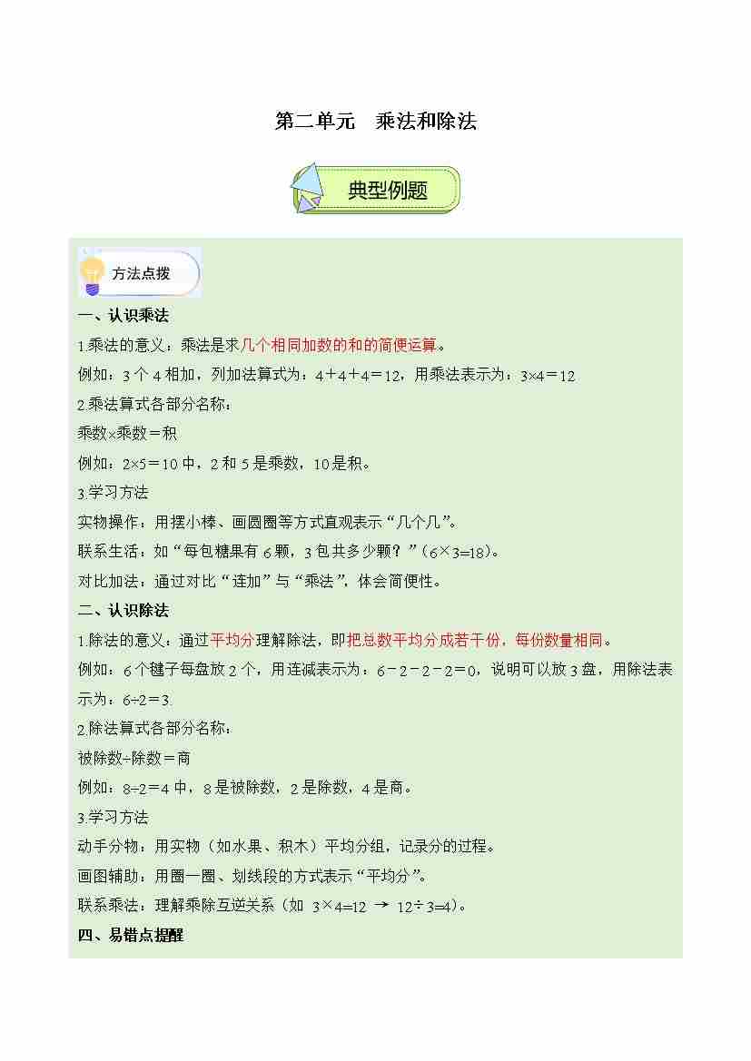 第二单元 乘法和除法(解决问题讲义)数学冀教版二年级上册(新教材)