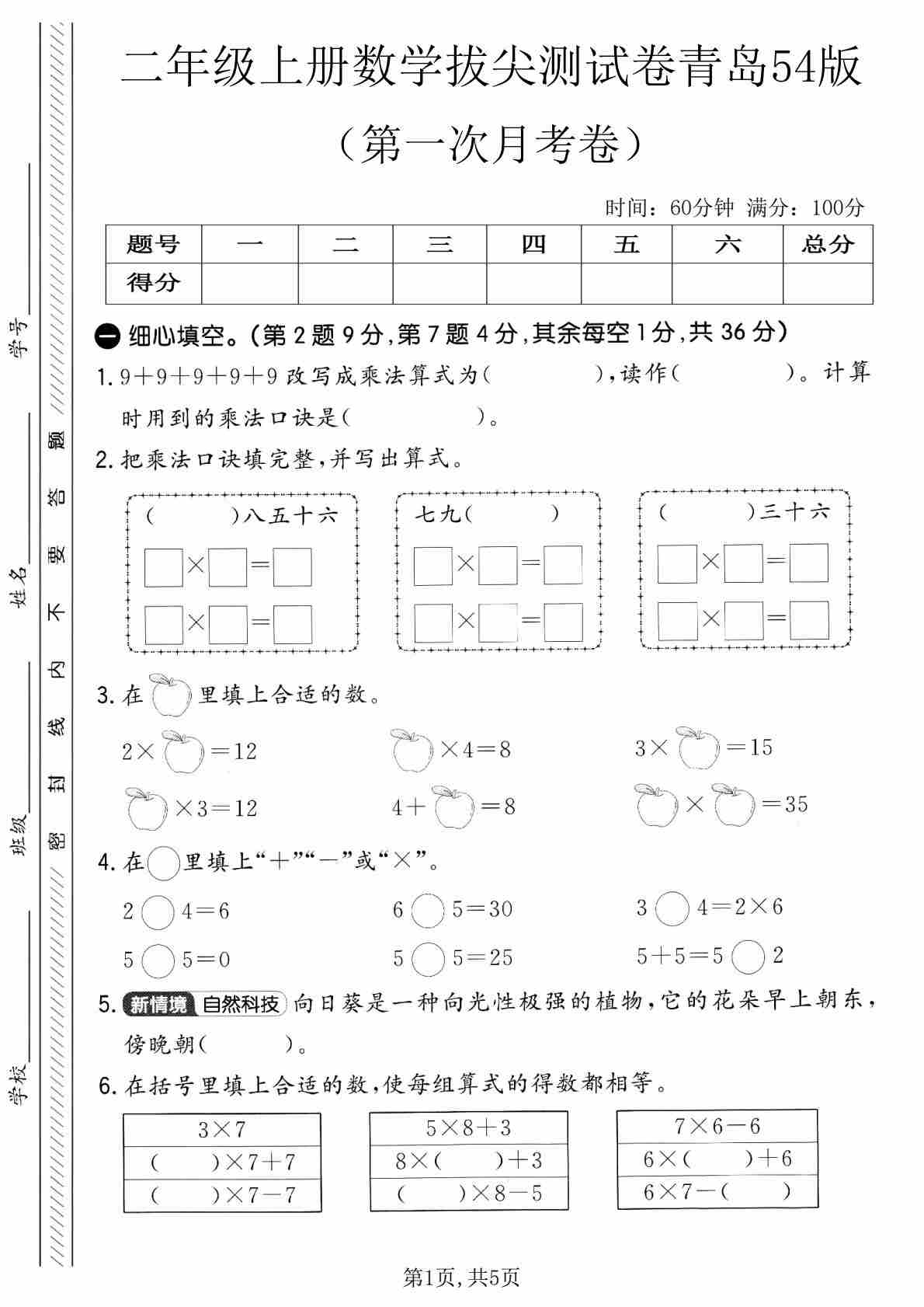 【青岛版五四制】二年级上册(2025秋版)数学电子课本