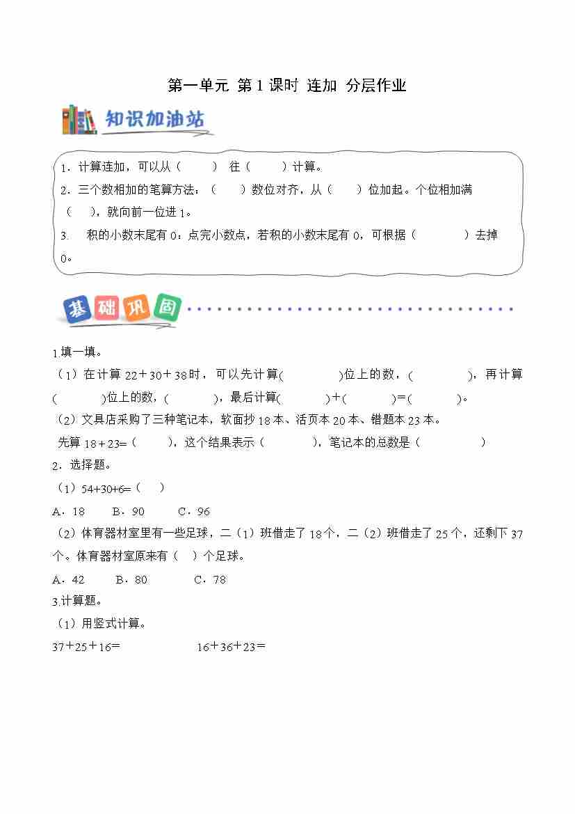 第一单元 第1课时 连加(分层作业)数学冀教版二年级上册(新教材)