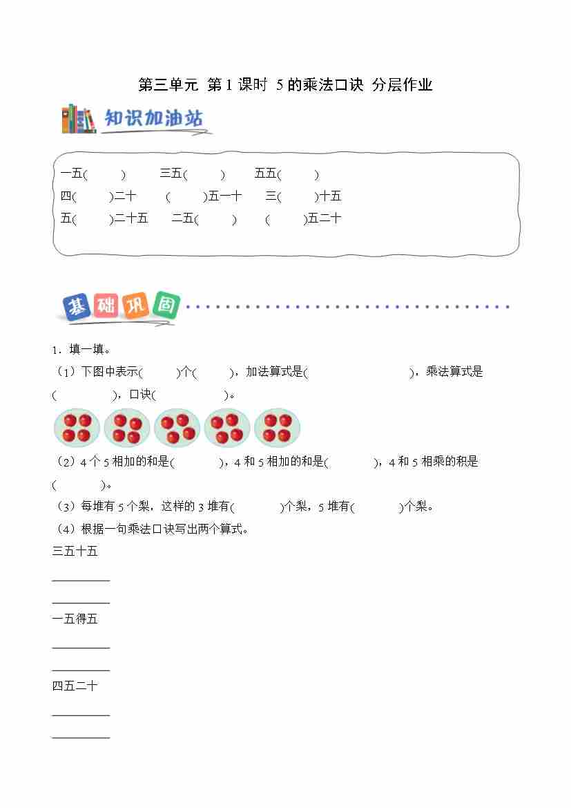 第三单元 第1课时 5的乘法口诀(分层作业)数学冀教版二年级上册(新教材)