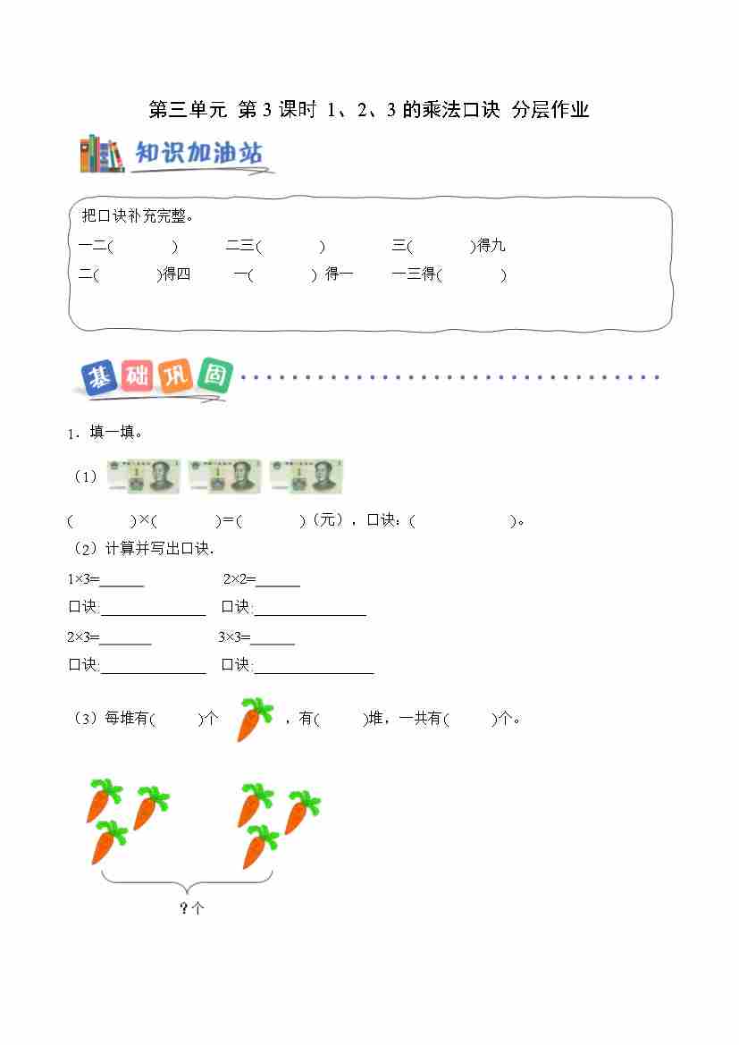 第三单元 第3课时 1、2、3的乘法口诀(分层作业)数学冀教版二年级上册(新教材)