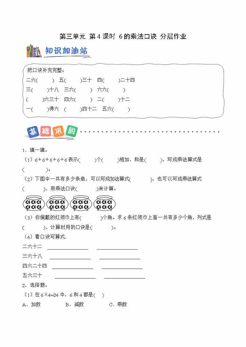 第三单元 第4课时 6的乘法口诀(分层作业)数学冀教版二年级上册(新教材)