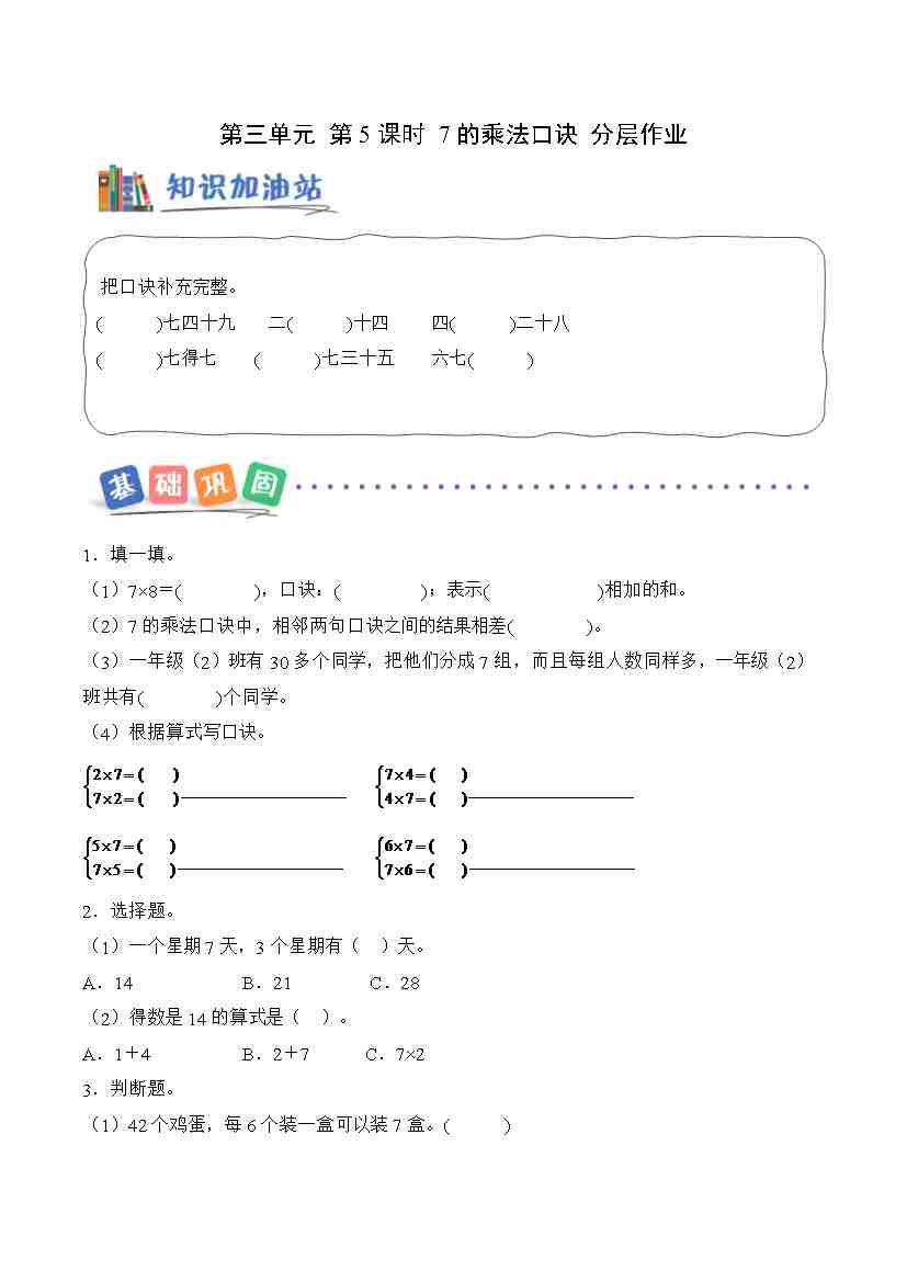第三单元 第5课时 7的乘法口诀(分层作业)数学冀教版二年级上册(新教材)