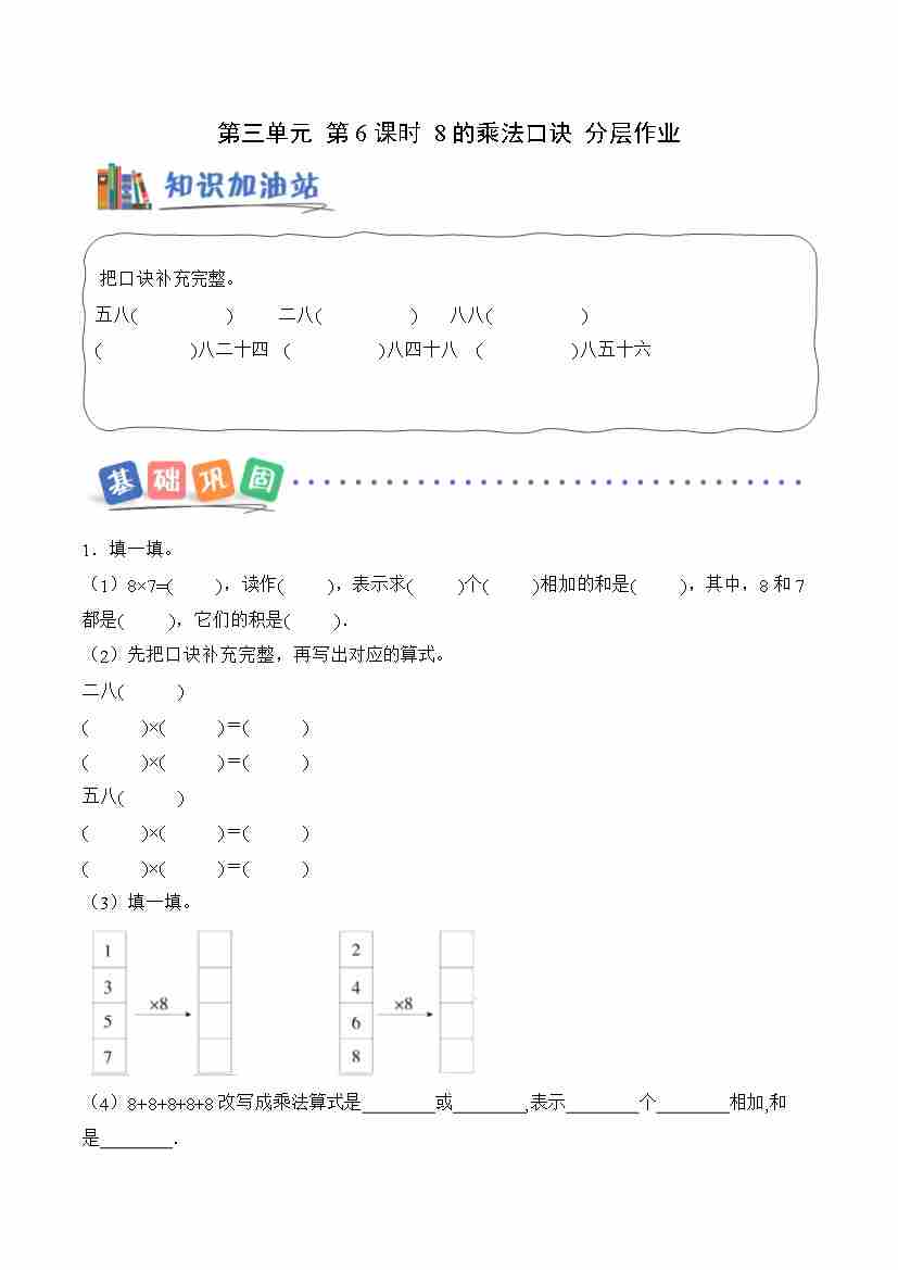 第三单元 第6课时 8的乘法口诀(分层作业)数学冀教版二年级上册(新教材)