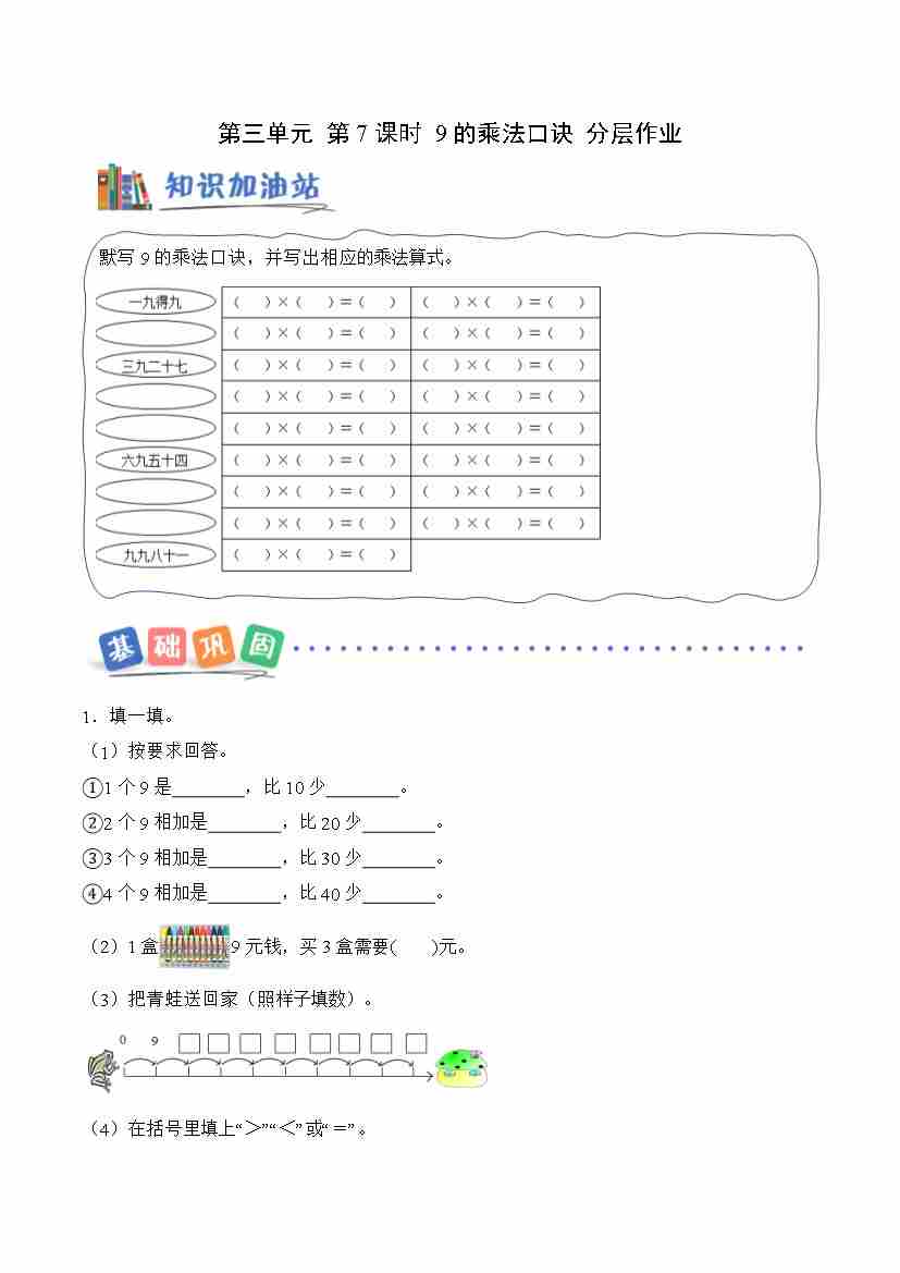 第三单元 第7课时 9的乘法口诀(分层作业)数学冀教版二年级上册(新教材)