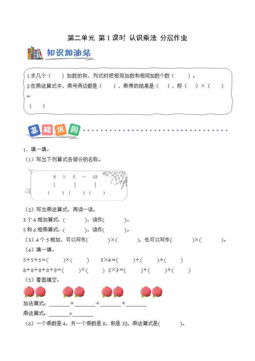 第二单元 第1课时 认识乘法(分层作业)数学冀教版二年级上册