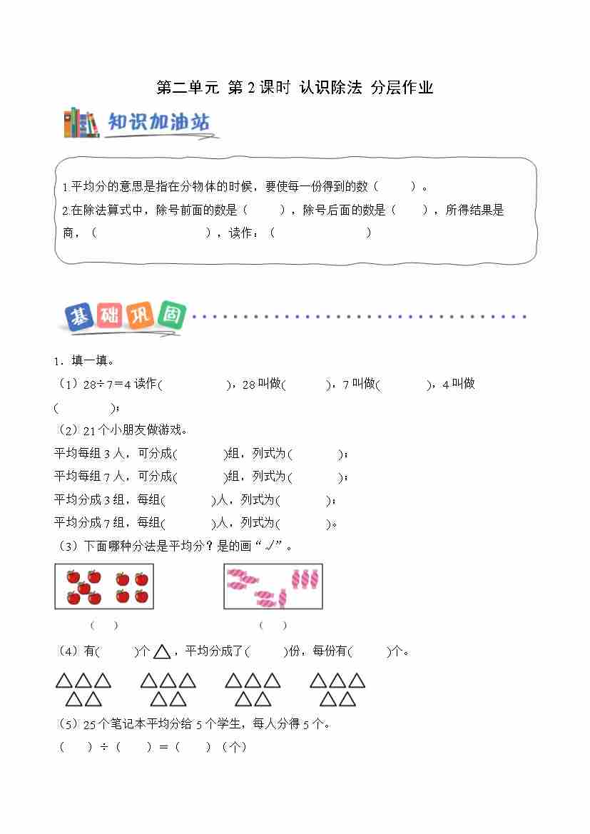 第二单元 第2课时 认识除法(分层作业)数学冀教版二年级上册