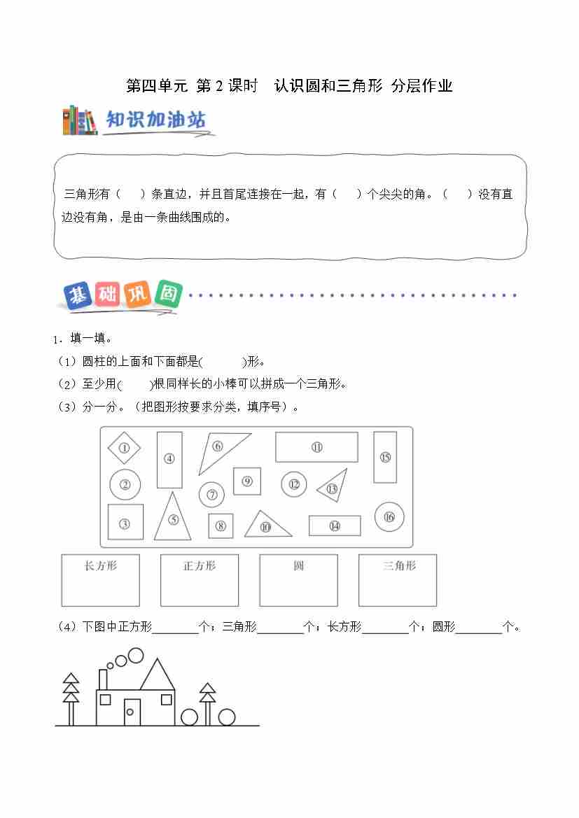 第四单元 第2课时 认识圆和三角形(分层作业)数学冀教版二年级上册(新授课)