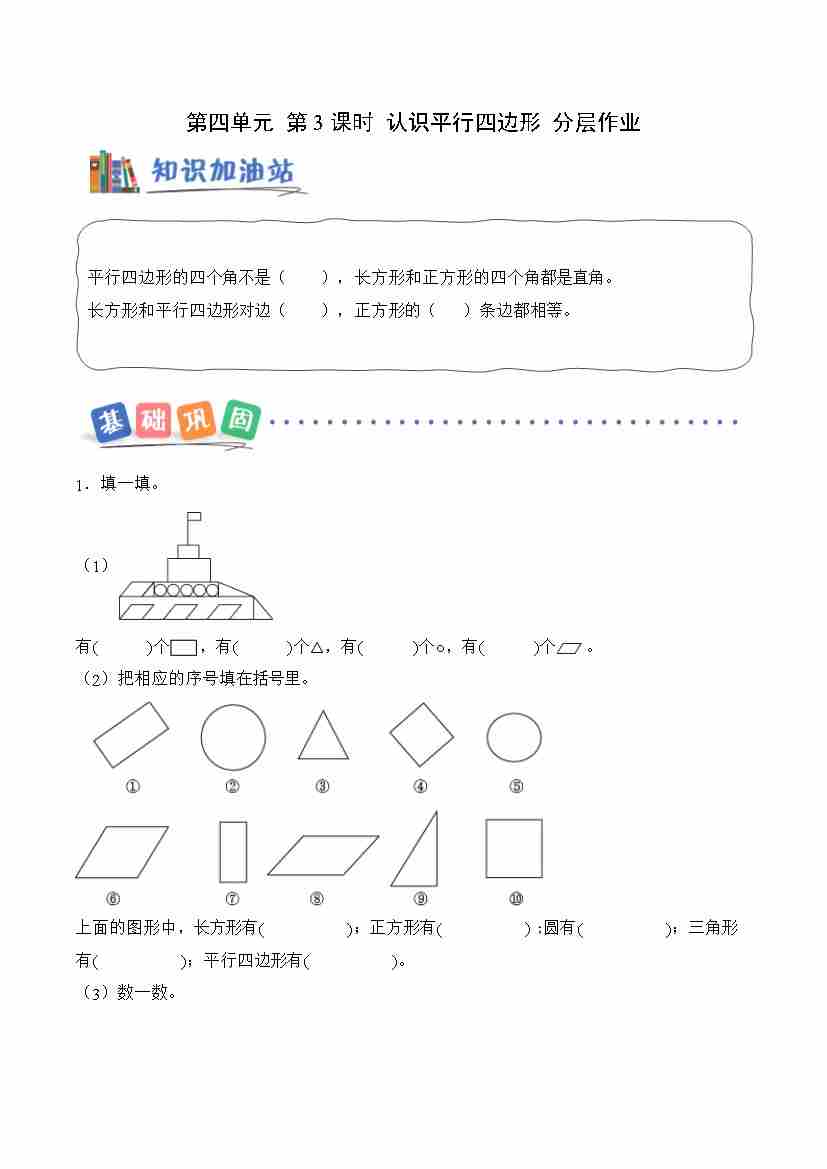 第四单元 第3课时 认识平行四边形(分层作业)数学冀教版二年级上册(新授课)