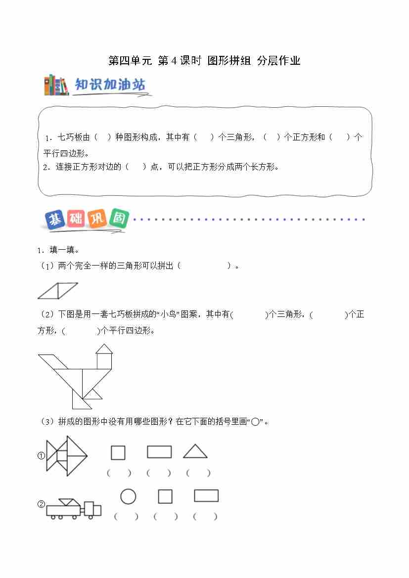 第四单元 第4课时 图形拼组(分层作业)数学冀教版二年级上册(新授课)