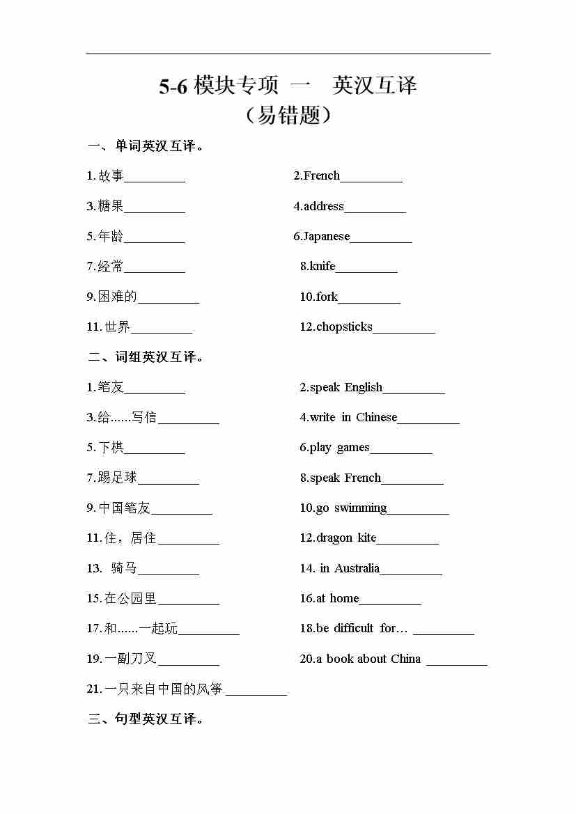 【易错题专项 一 英汉互译】单元专项 5-6模块 六年级英语上册 外研版(三起)含答案