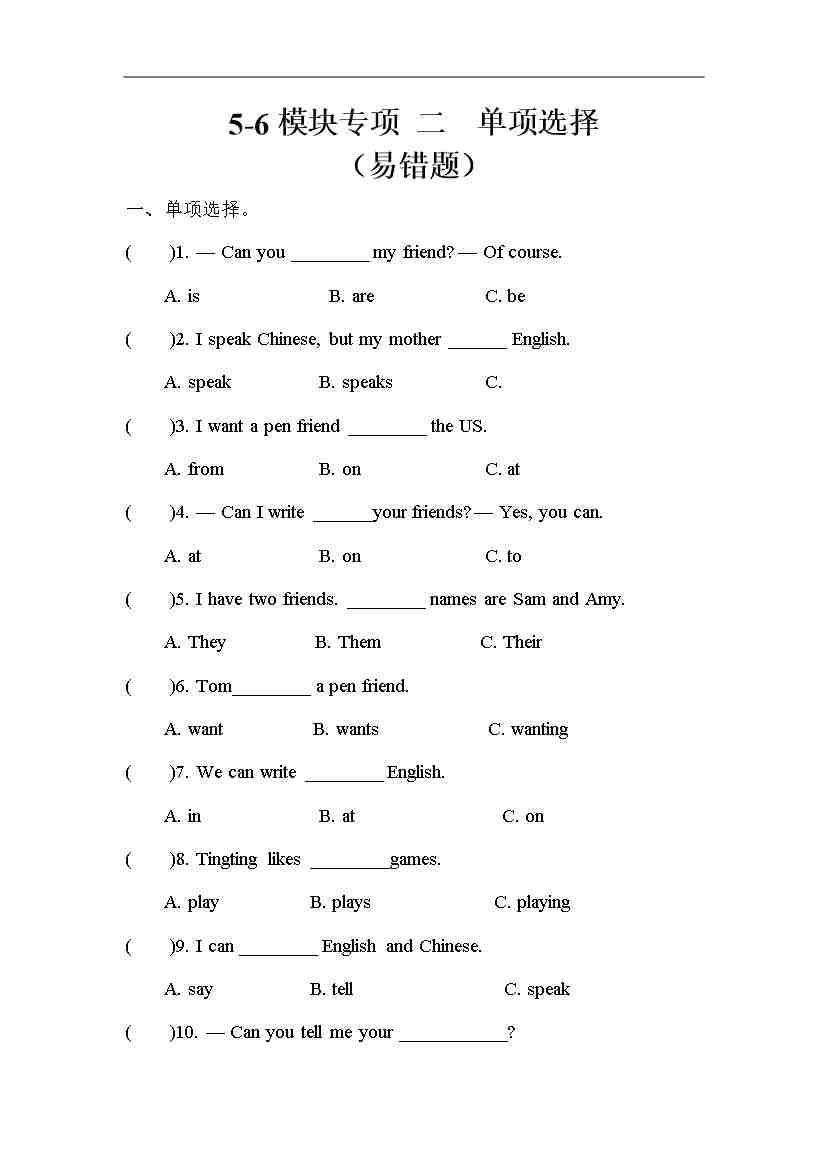 【易错题专项 二 单项选择】单元专项 5-6模块 六年级英语上册 外研版(三起)含答案
