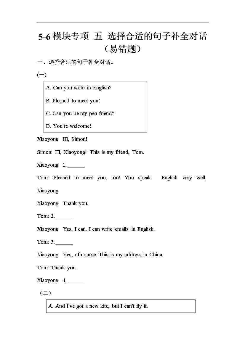 【易错题专项 五 选择合适的句子补全对话】单元专项 5-6模块 六年级英语上册 外研版(三起)含答案
